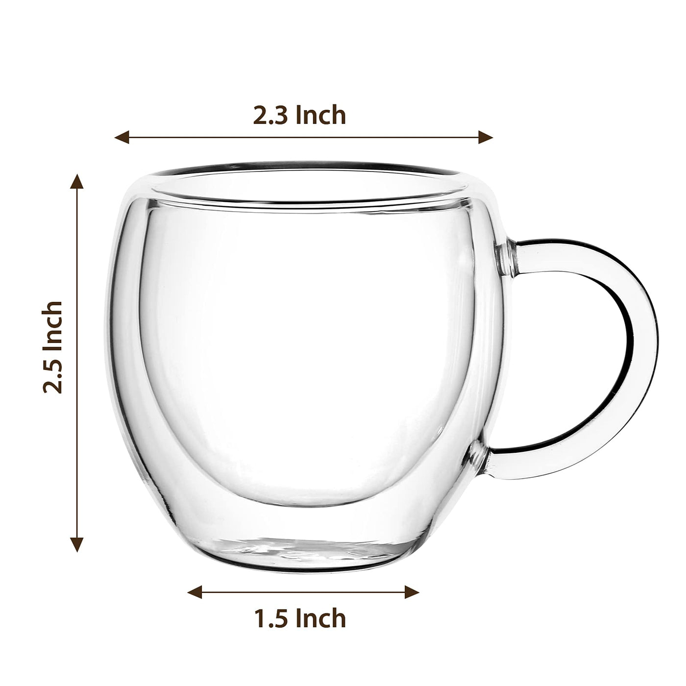 2.5Oz Presso Cups Set Of 4 With Handle, Espresso Shot Glasses, Expresso Shots Cup,Clear Double Wall Insulated Espresso Mugs,Taza