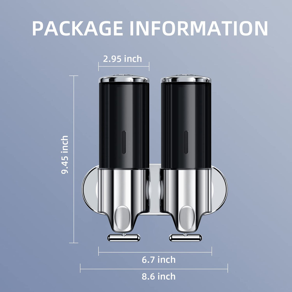 - Q: How is the shower dispenser mounted? A: The dispenser is wall-mounted and can be installed using screws, double-sided tape, or glue, which are not included.