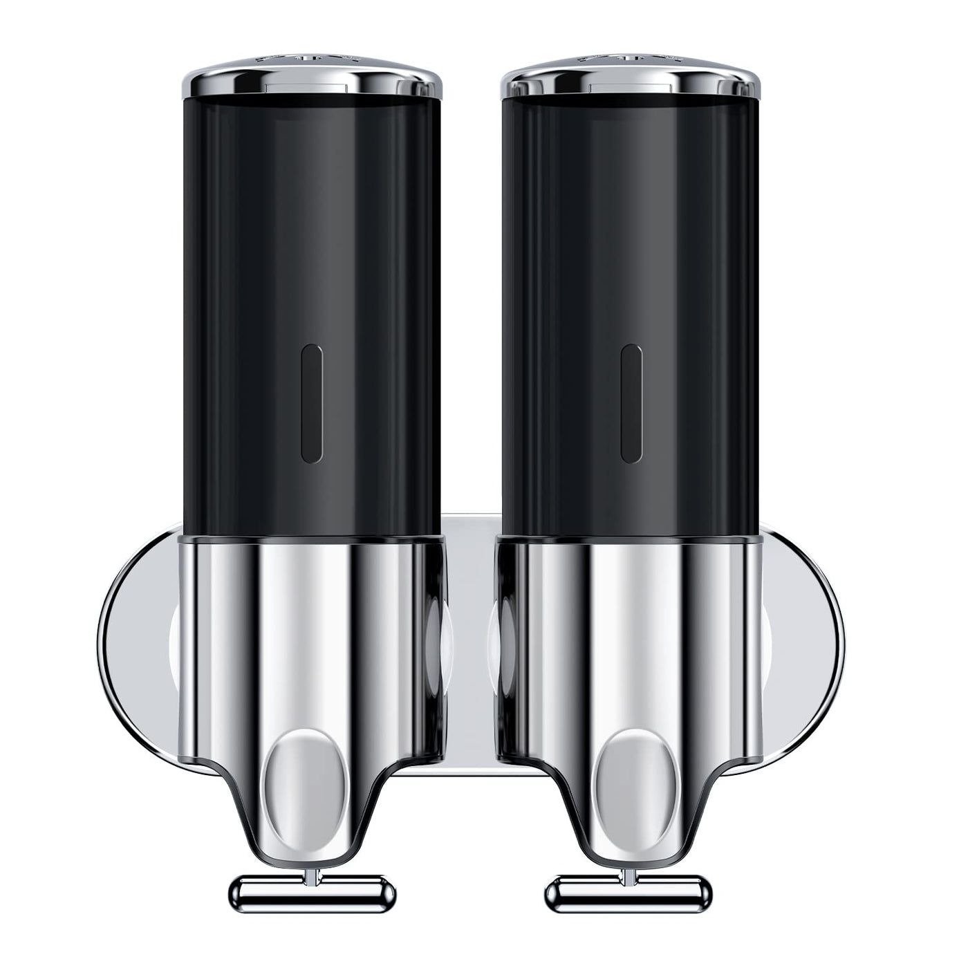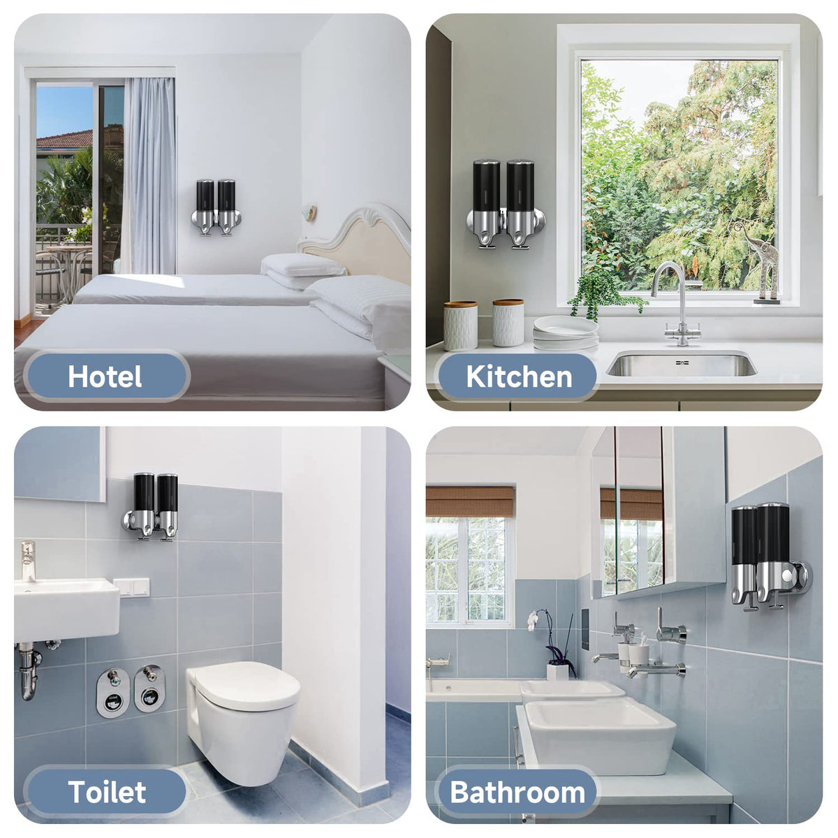 2 in 1 Chamber Wall Mounted Bathroom Shower Pump Dispenser and Organizer-Holds Shampoo Soap Conditioner Shower Gel for Bathroom Kitchen Hotel (Black)