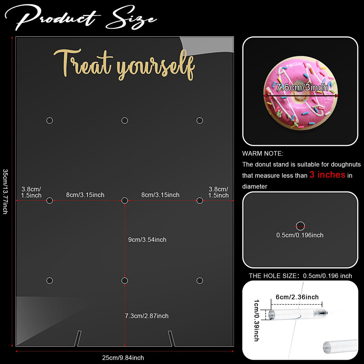 - Q: What are the dimensions of the donut stand? A: The donut stand measures approximately 13.78 inches by 9.84 inches, making it suitable for displaying donuts that are less than 3 inches in diameter.