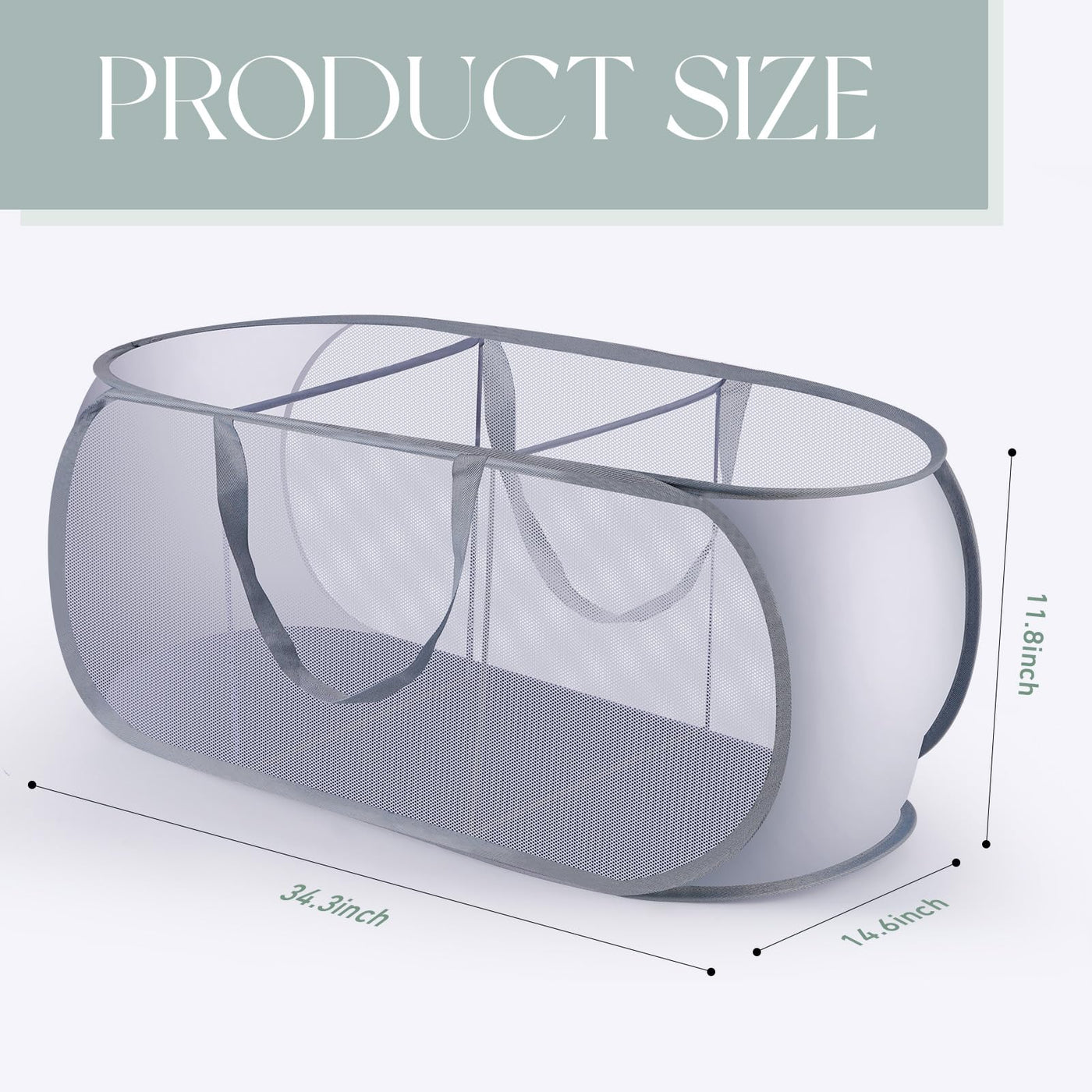 - Q: What are the dimensions of the 2 Pack Pop Up Hampers? A: The dimensions of each collapsible laundry hamper are 34.3 inches in length, 14.6 inches in width, and 11.8 inches in height.