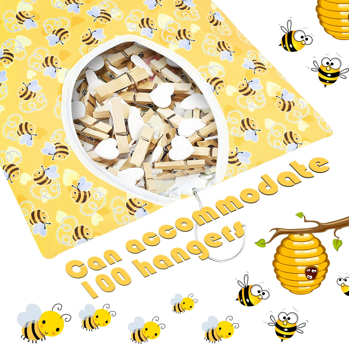 2 Pcs Bee Clothes Pin Bag Bee Clothespin Bag Holder Bee Honeycomb Clothespin Holder 15 X 11 Inch Clothes Pin Hanging Bag Clothes