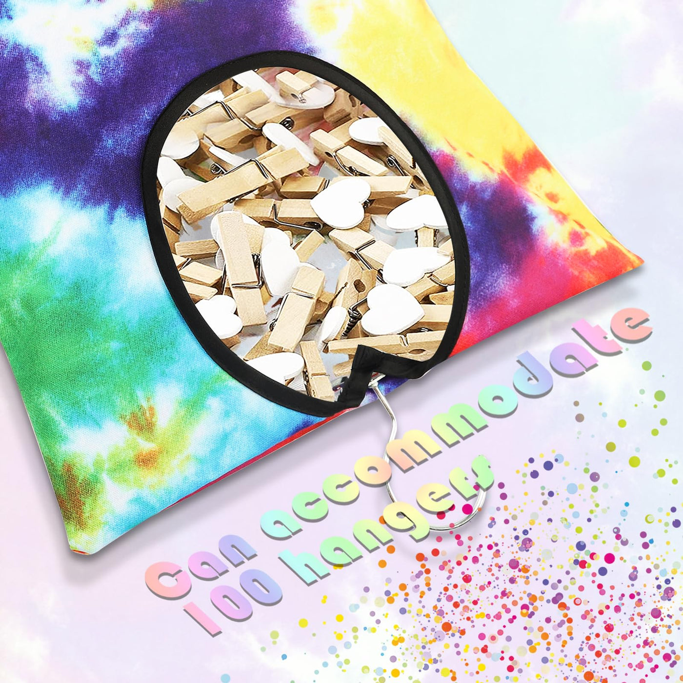 2 Pcs Clothes Pin Hanging Bag Tie Dye Clothes Pin Bag With Hanging Hook 15 X 11 Inch Tie-Dye Clothes Pin Bag Laundry Canvas Clot