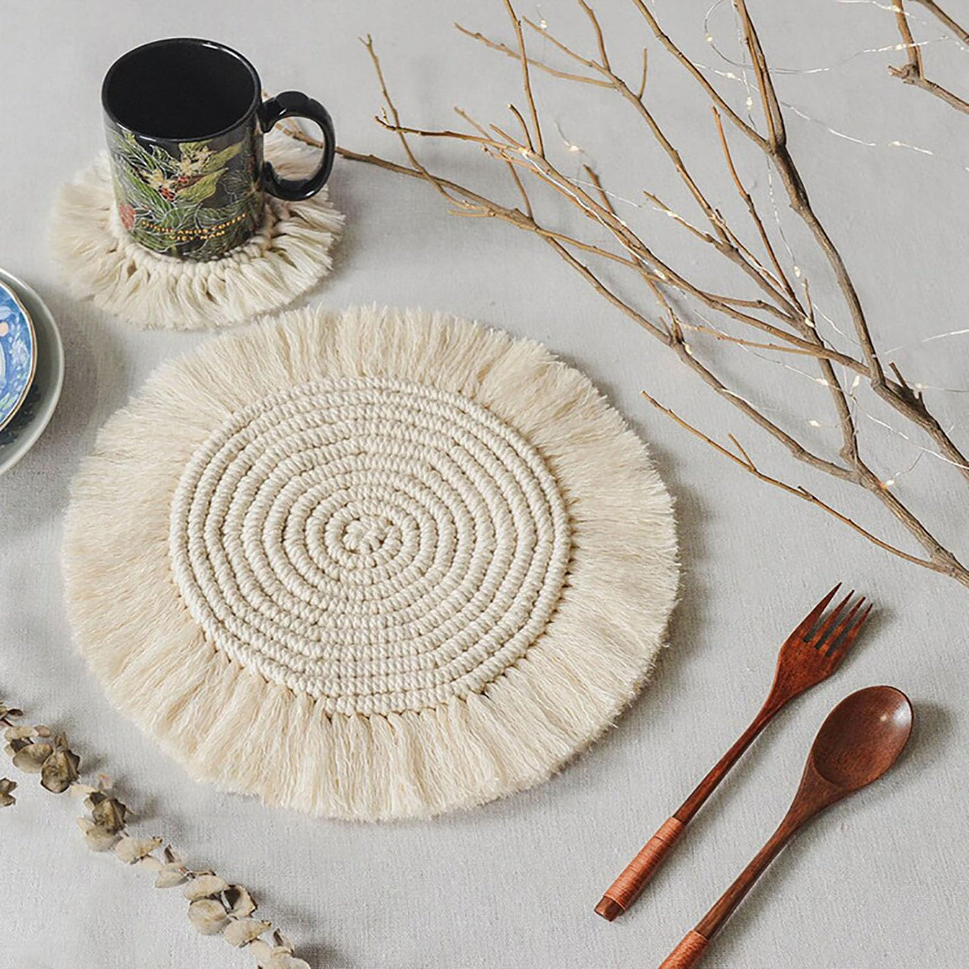 • Q: How should I clean the macrame pot holders? A: Simply hand wash the placemats and lay them flat to dry to maintain their quality and appearance.