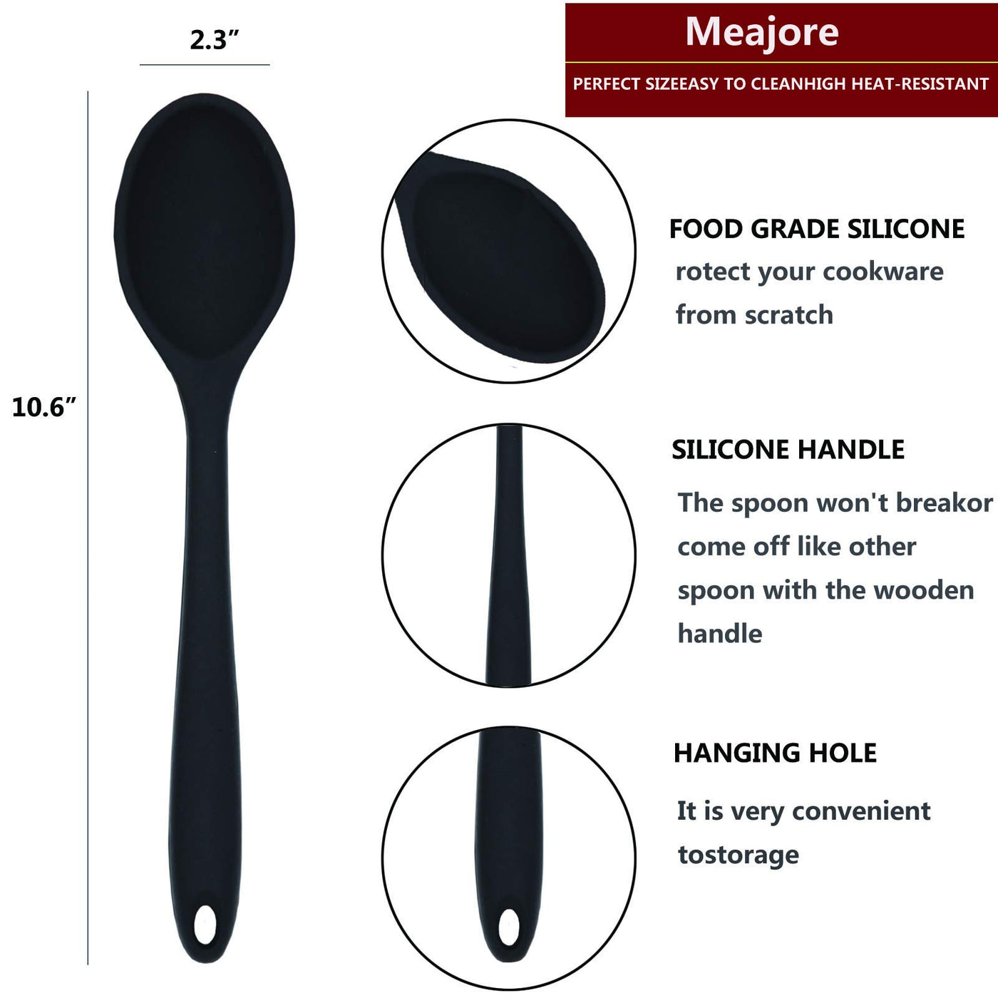 - Q: What are the dimensions of the silicone spoons? A: Each spoon measures 10.6 inches in length and 2.3 inches in width.