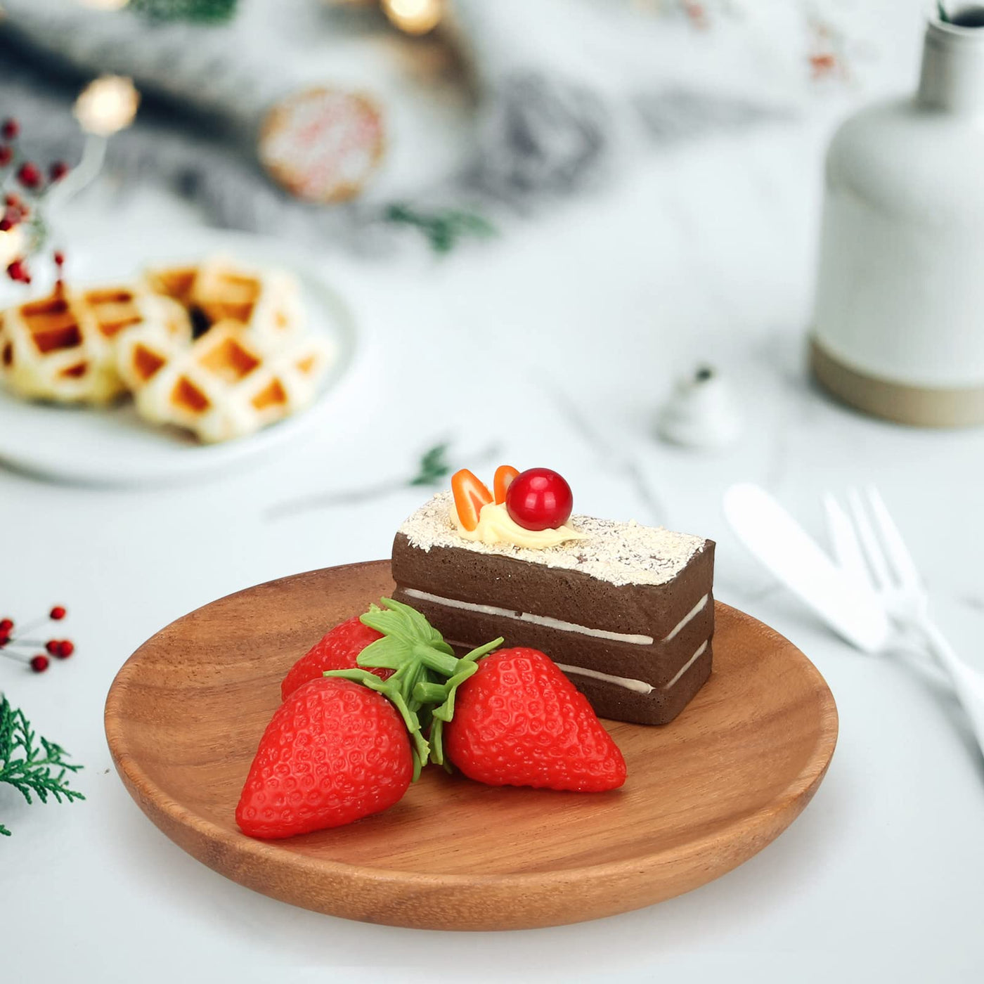 2 Pcs Small Wooden Plates For Eating Acacia Wood Appetizer Plates Snack Plate Mini Serving Dishes Plate Round Charcuterie Boards