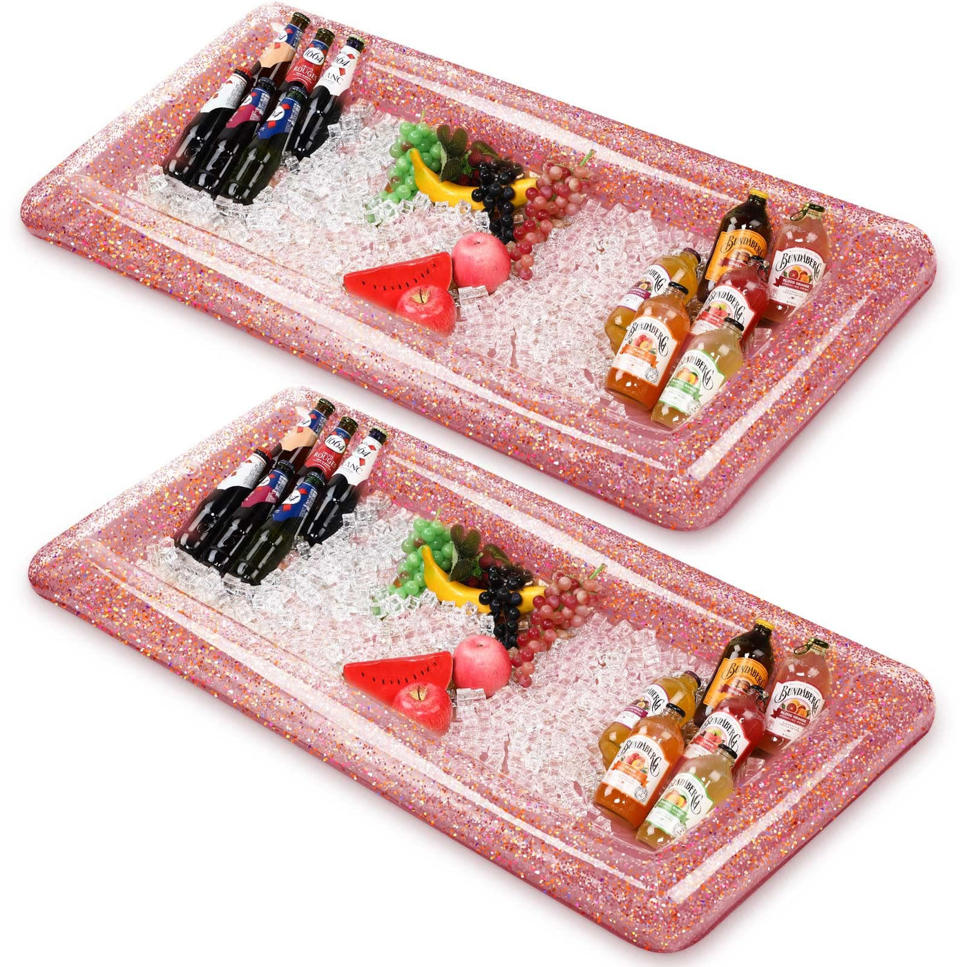2 Pieces Inflatable Buffett Cooler Inflatable Food Cooler Buffet Inflatable Serving Bar Tray With Glittering Confetti For Servin