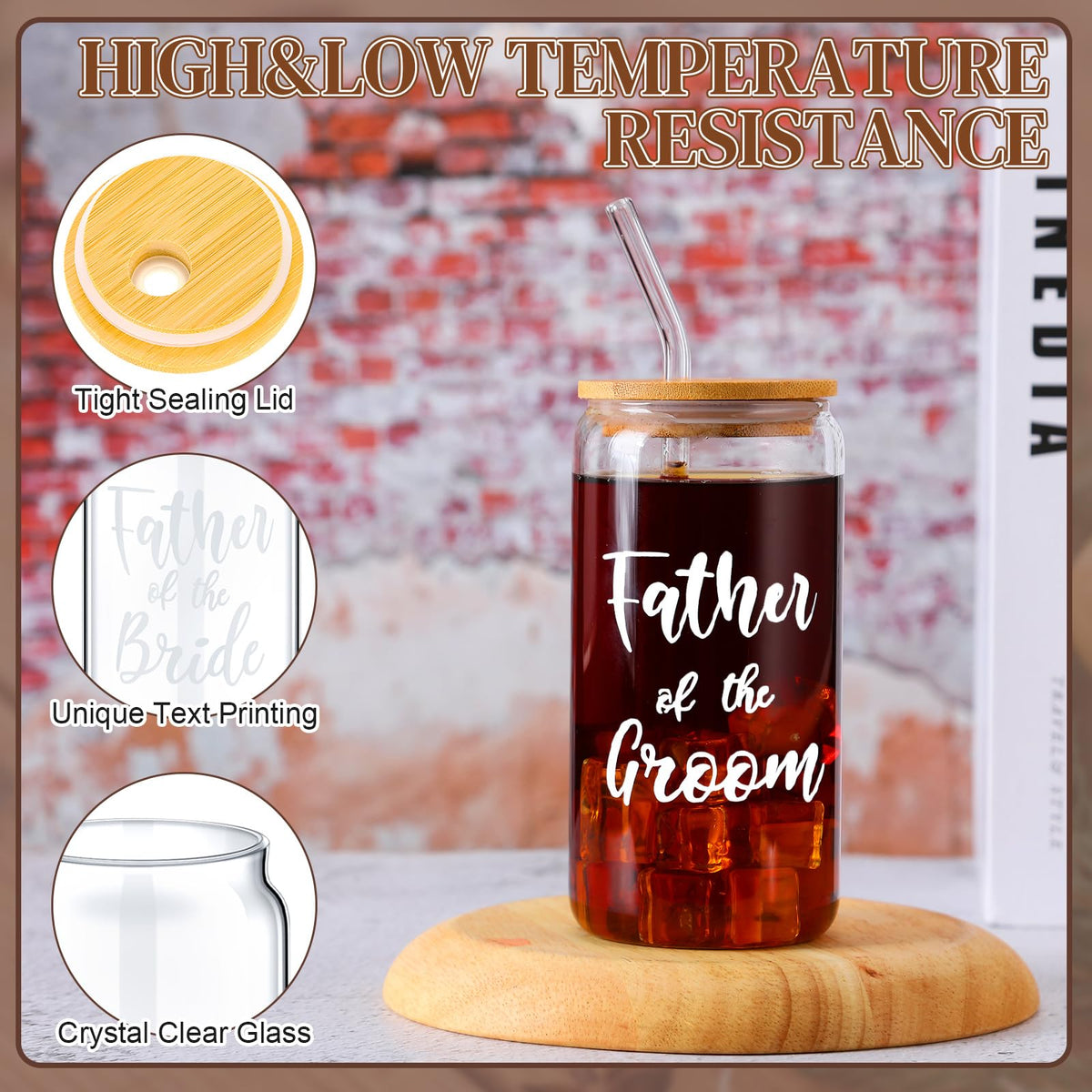 2 Sets Mother Of The Groom Glass Cups With Lids And Straws, Mother Of The Bride 16 Oz Iced Coffee Cups, Wedding Gifts For Bride