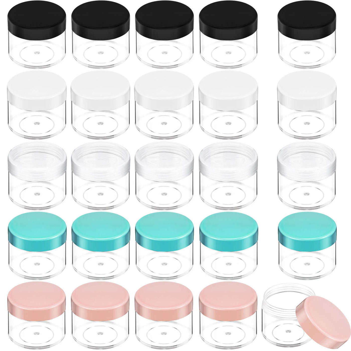 20 Pieces Round Pot Jars Plastic Cosmetic Containers Set With Lid For Liquid Creams Sample, 20 Ml/ 0.7 Oz (Black, White, Clear,