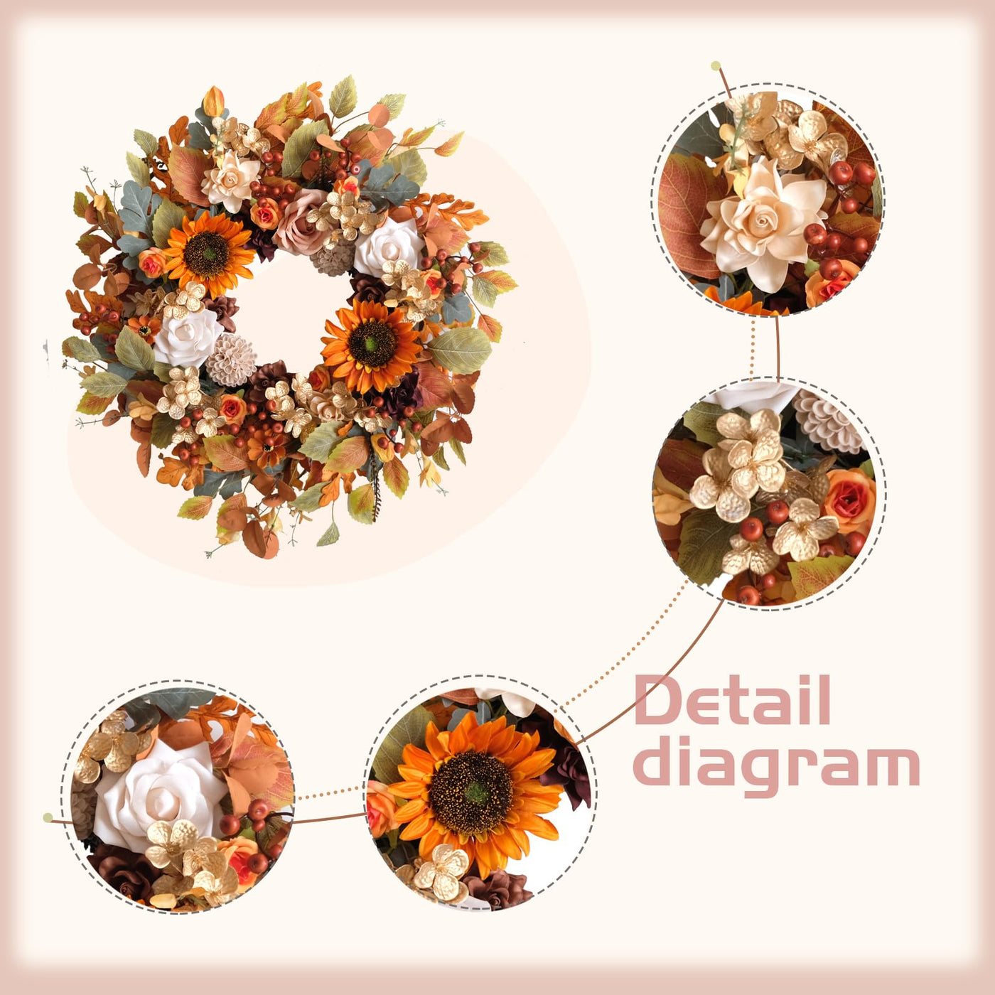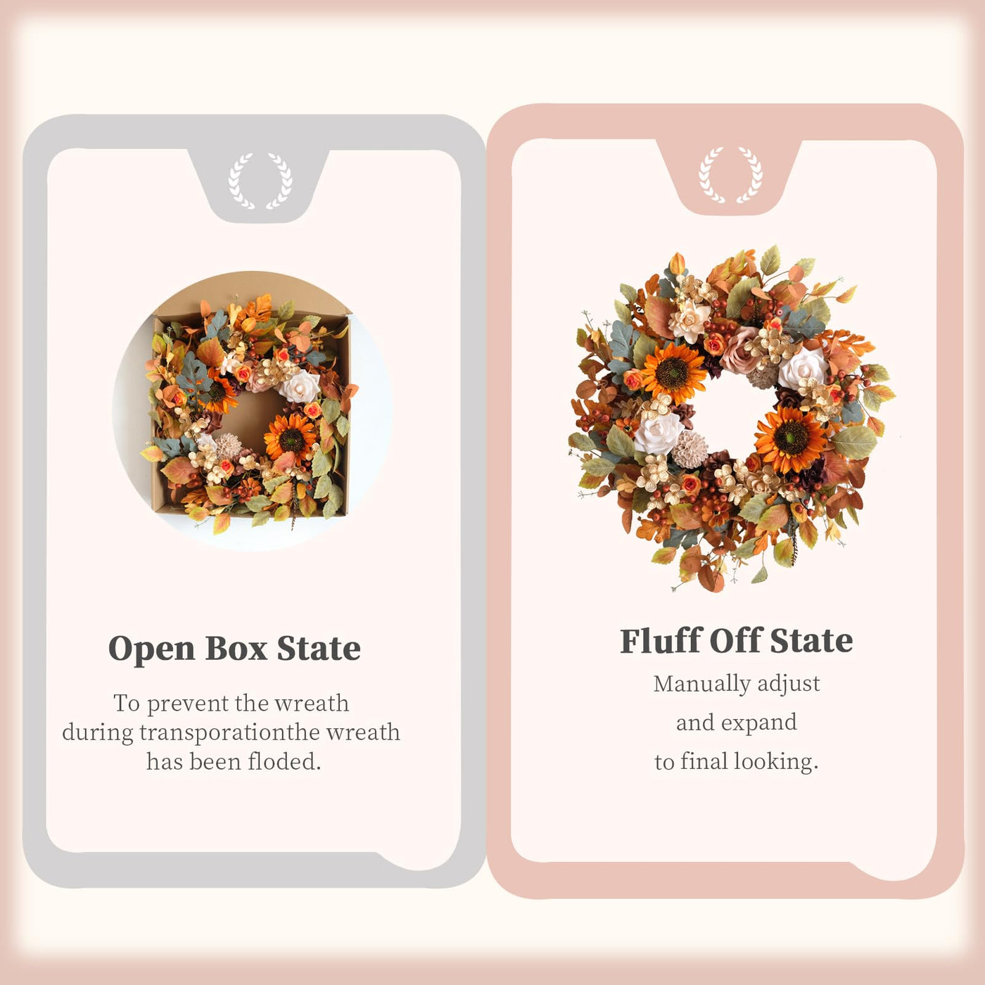 22 Inch Fall Wreaths for Front Door Artificial Flower Wreath with Sunflowers Leaves Large Autumn Farmhouse Wreath for Inside Out