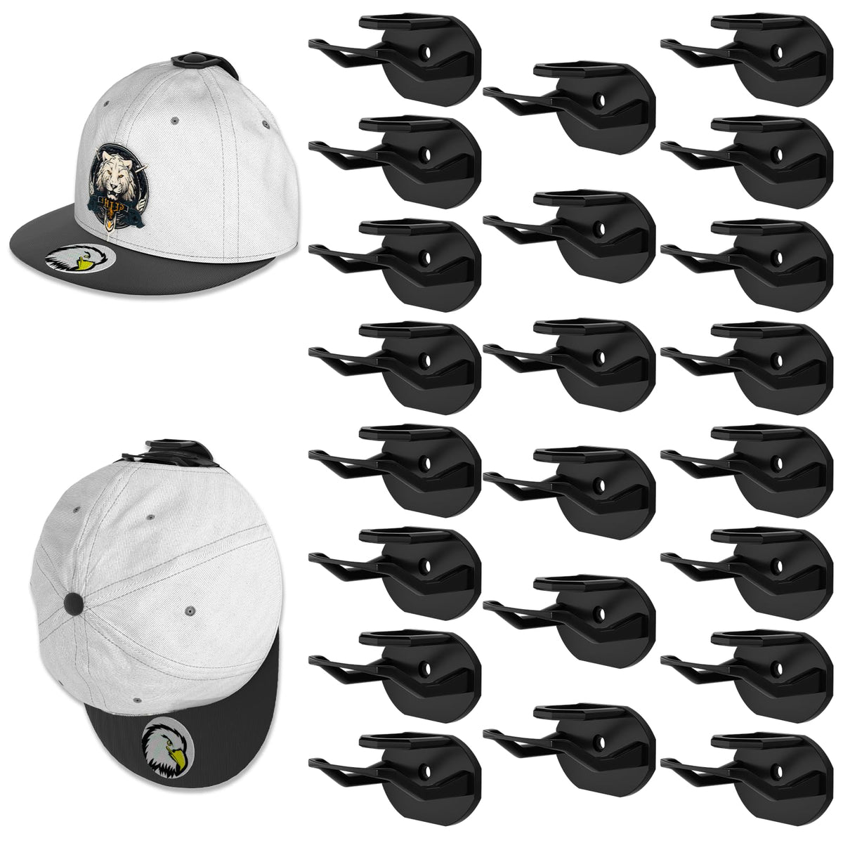 - Q: How many hats can I hang with one pack of hooks? A: This pack includes 22 adhesive hat hooks, allowing you to hang multiple hats, depending on how you choose to arrange them.