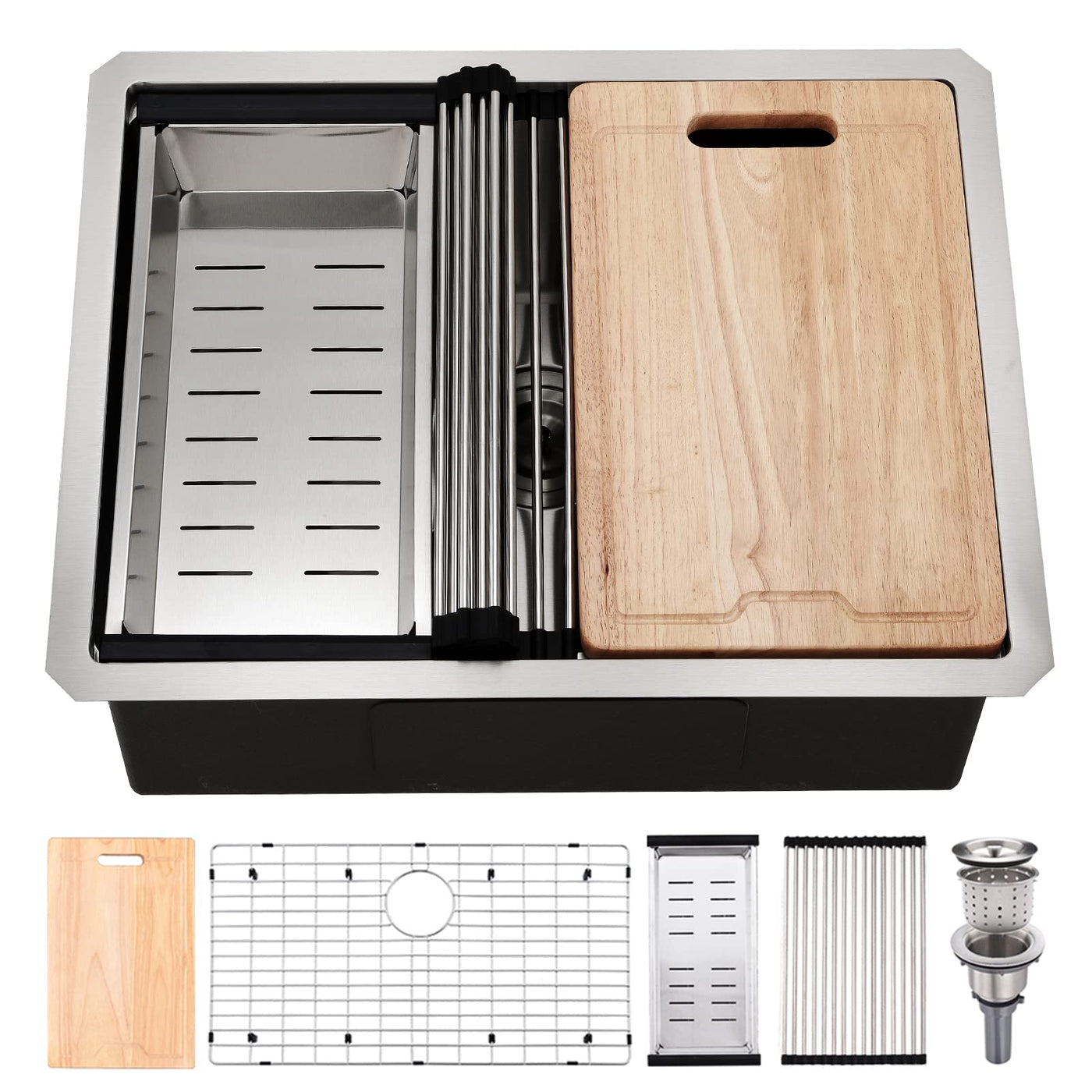 24 Inch Undermount Kitchen Sink, Boomhoze 24 X 19 Inch Stainless Steel Undermount Workstation Sink 16 Gauge Single Bowl Kitchen