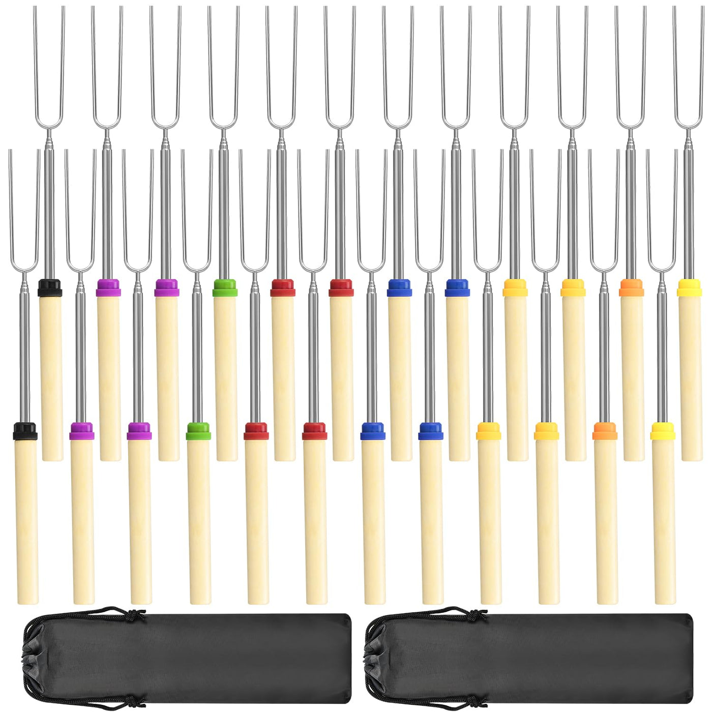 24 Pack Marshmallow Roasting Sticks Set, Extendable 32In Long Metal Barbecue Skewers With Wooden Handle, For Marshmallow, Hot Do