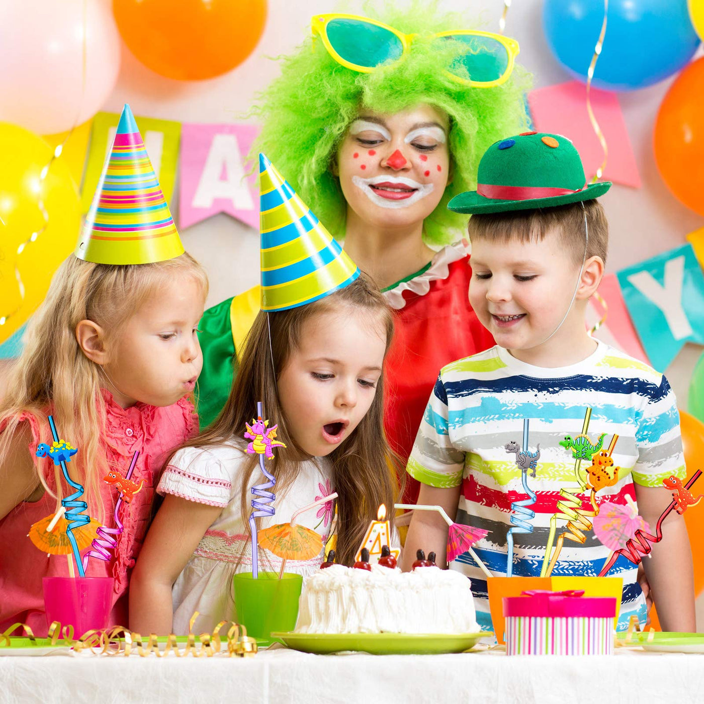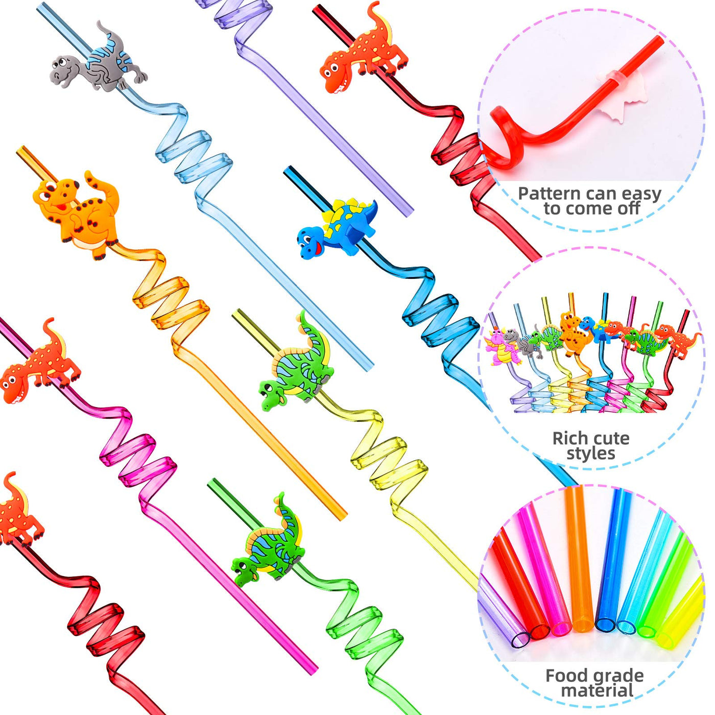 • Q: What styles are included in the pack? A: The pack includes 24 straws featuring 8 different dinosaur designs in various bright colors, adding fun to your party decorations.