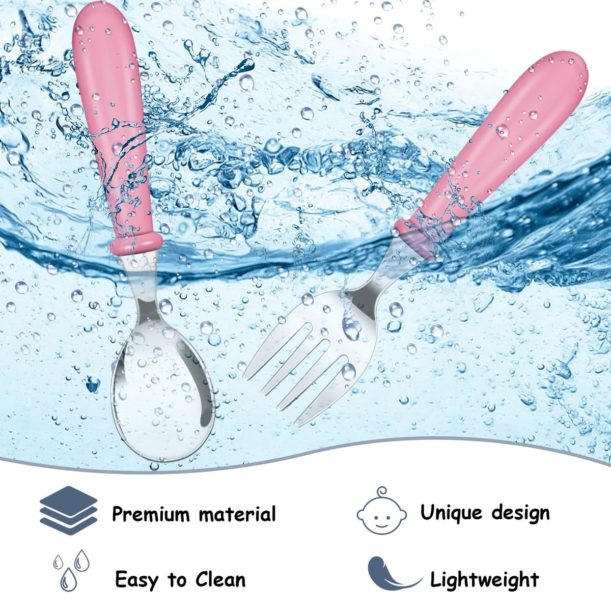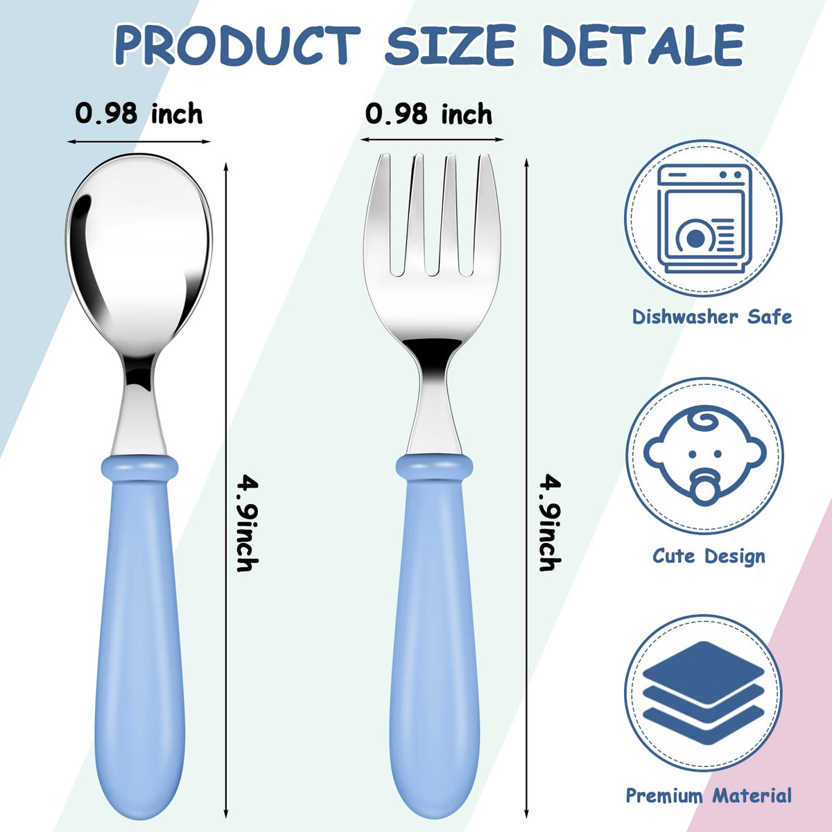 - Q: What makes these utensils different from regular silverware? A: These utensils are specifically designed for toddlers, featuring wider handles for easy gripping and rounded edges for safety.