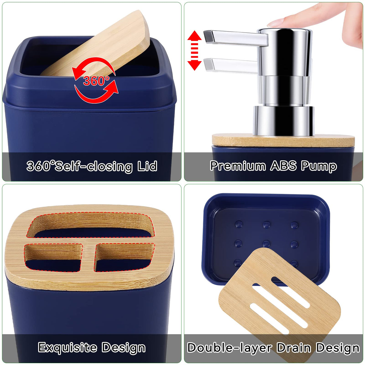 - Q: What is the purpose of the tray included in the set? A: The tray can be used to organize toiletries or decorative items, adding both functionality and style to your bathroom.