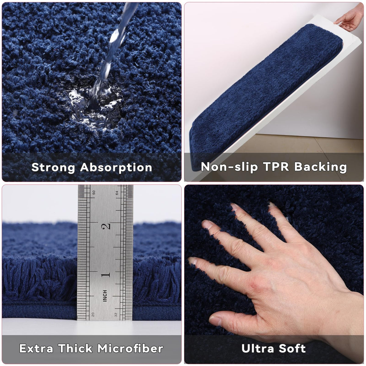 - Q: Are the bathroom rugs slip-resistant? A: Yes, the bathroom rugs feature a TPR bottom design that firmly anchors the mat in place, providing stability and safety.