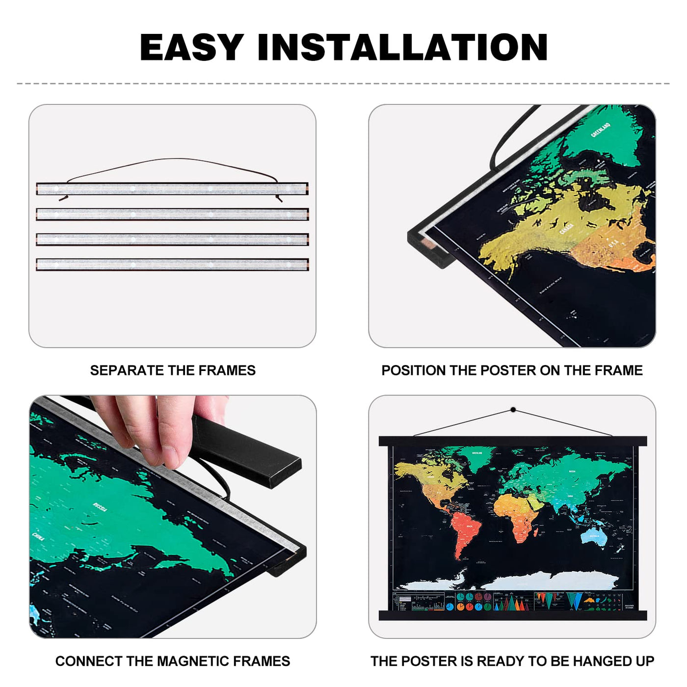 - Q: How does the magnetic feature work? A: The frame uses a magnetic mechanism that securely holds your poster in place without the need for clips or adhesive, allowing for easy changes.