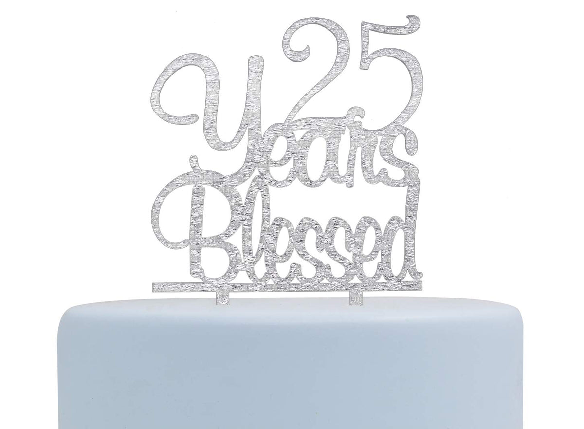 25 Years Blessed Cake Topper- Happy 25Th Birthday/Anniversary Party Decorations (Silver)