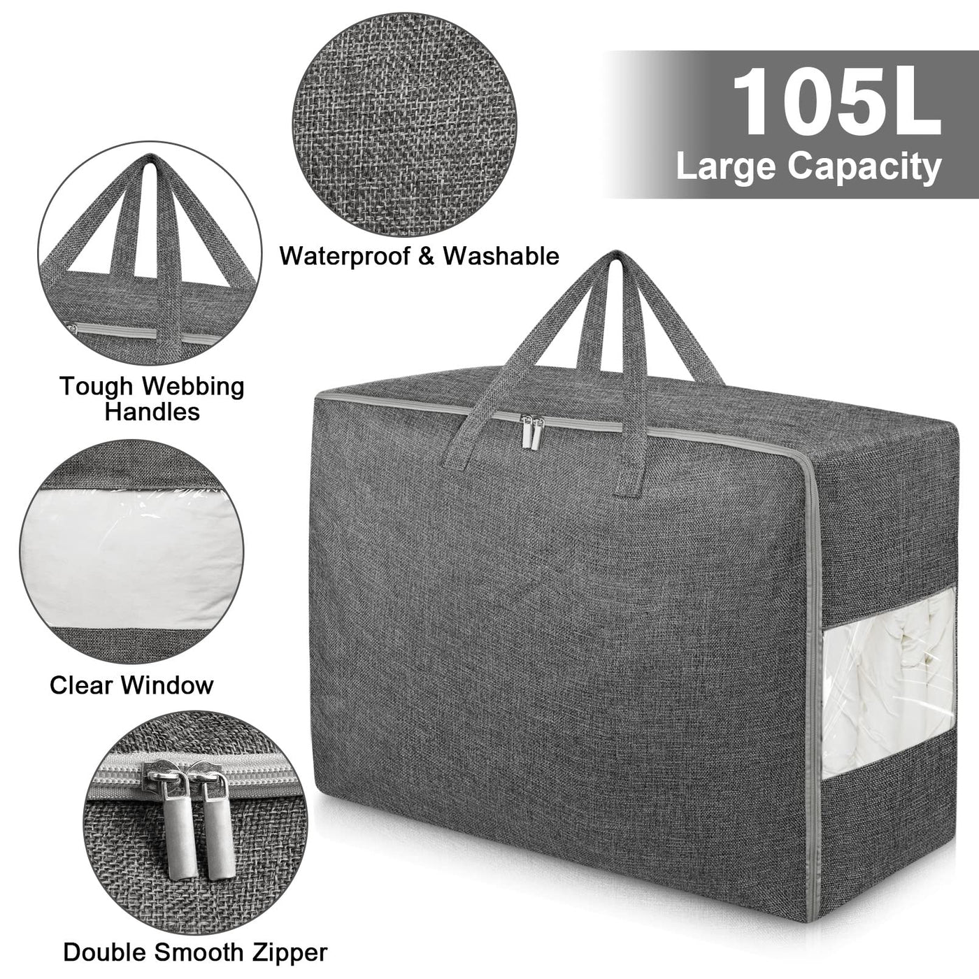 2Pack 105L Extra Large Storage Bags, Folding Moving Comforter Blanket Storage Bags Closet Organizers and Storage Containers with