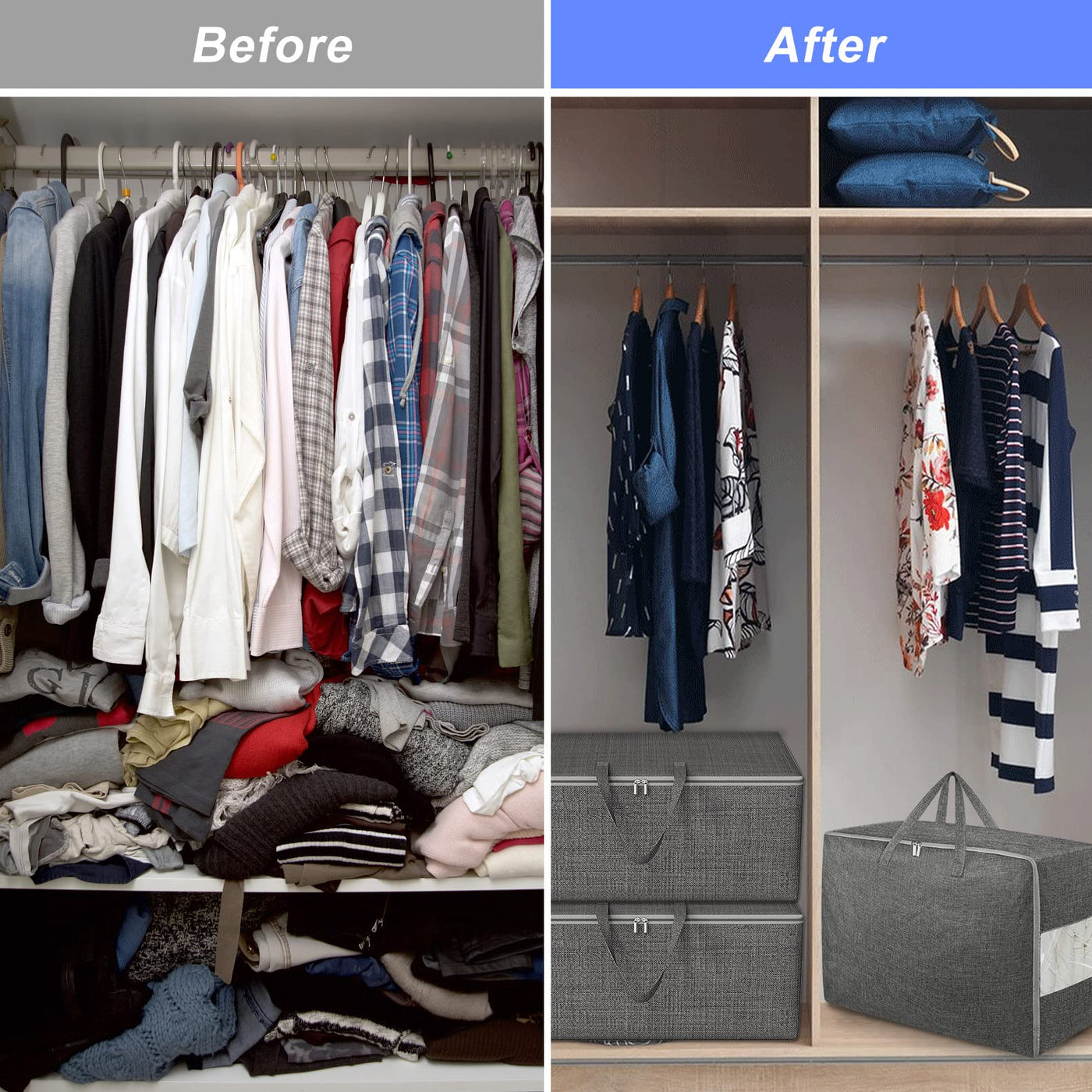 - Q: How do these storage bags help with organization? A: These bags help keep your closet and room organized by providing a dedicated space for various items, allowing for better space management.