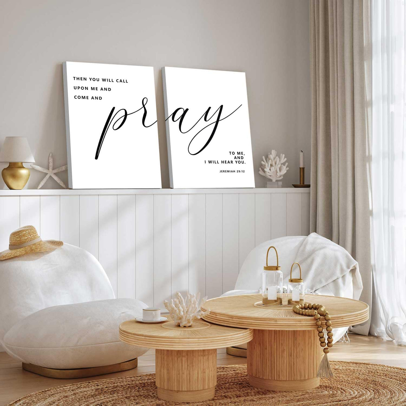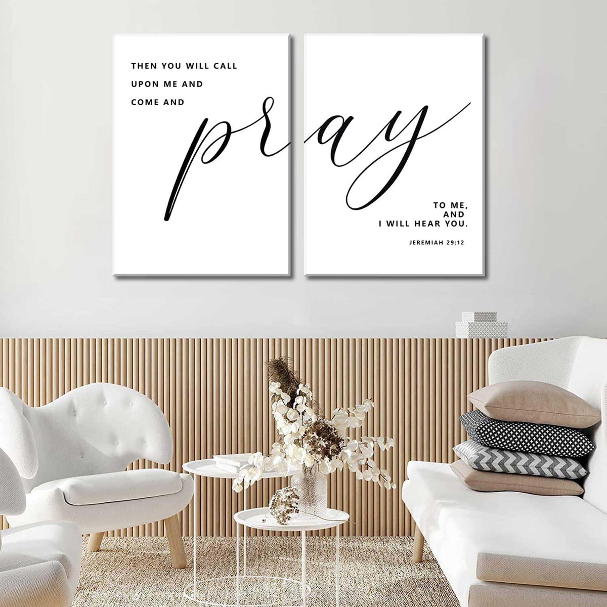 2Pcs Framed Bible Verse Wall Art Jeremiah 29:12 Pray To Me Canvas Prints Christian Inspirational Scripture Posters Wall Decor Pi