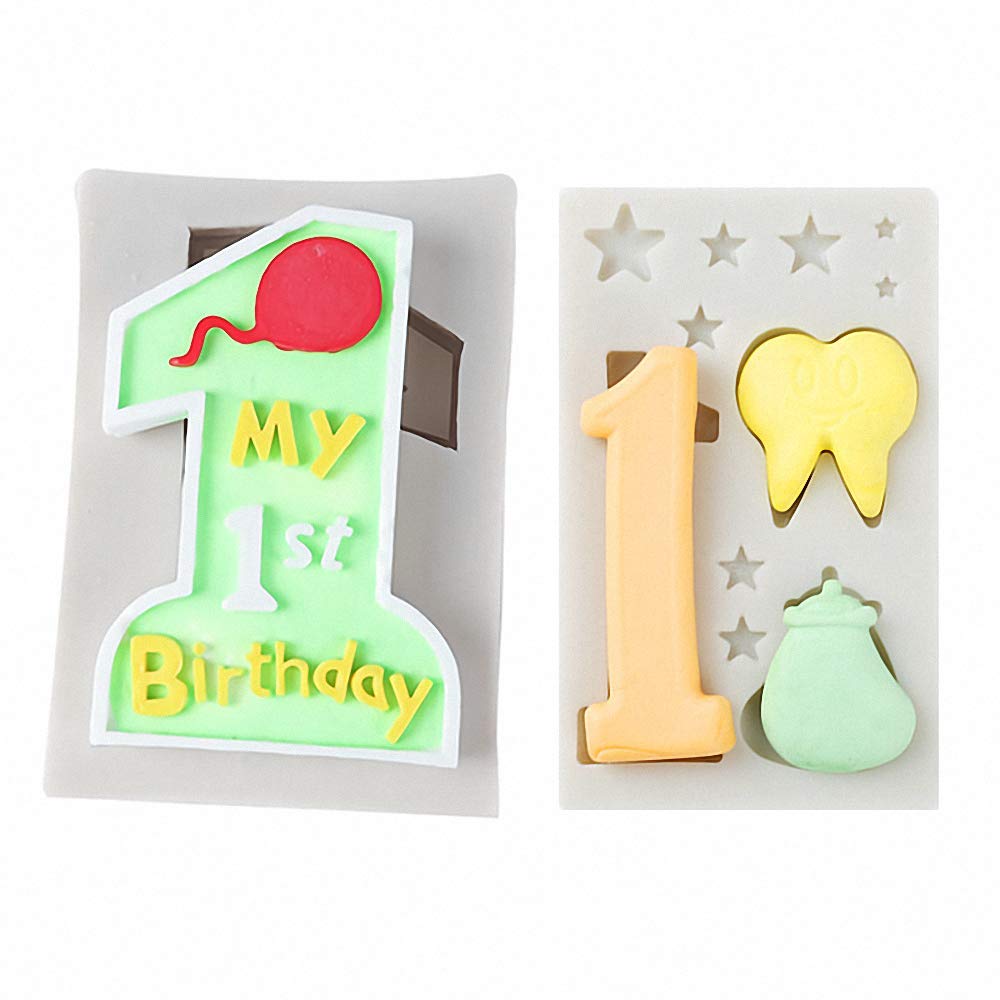 2Pcs/Set 1St Birthday Silicone Fondant Molds, Number 1 & Baby Tooth Chocolate Candy Sugar Craft Mold Happy Birthday Handmade Can