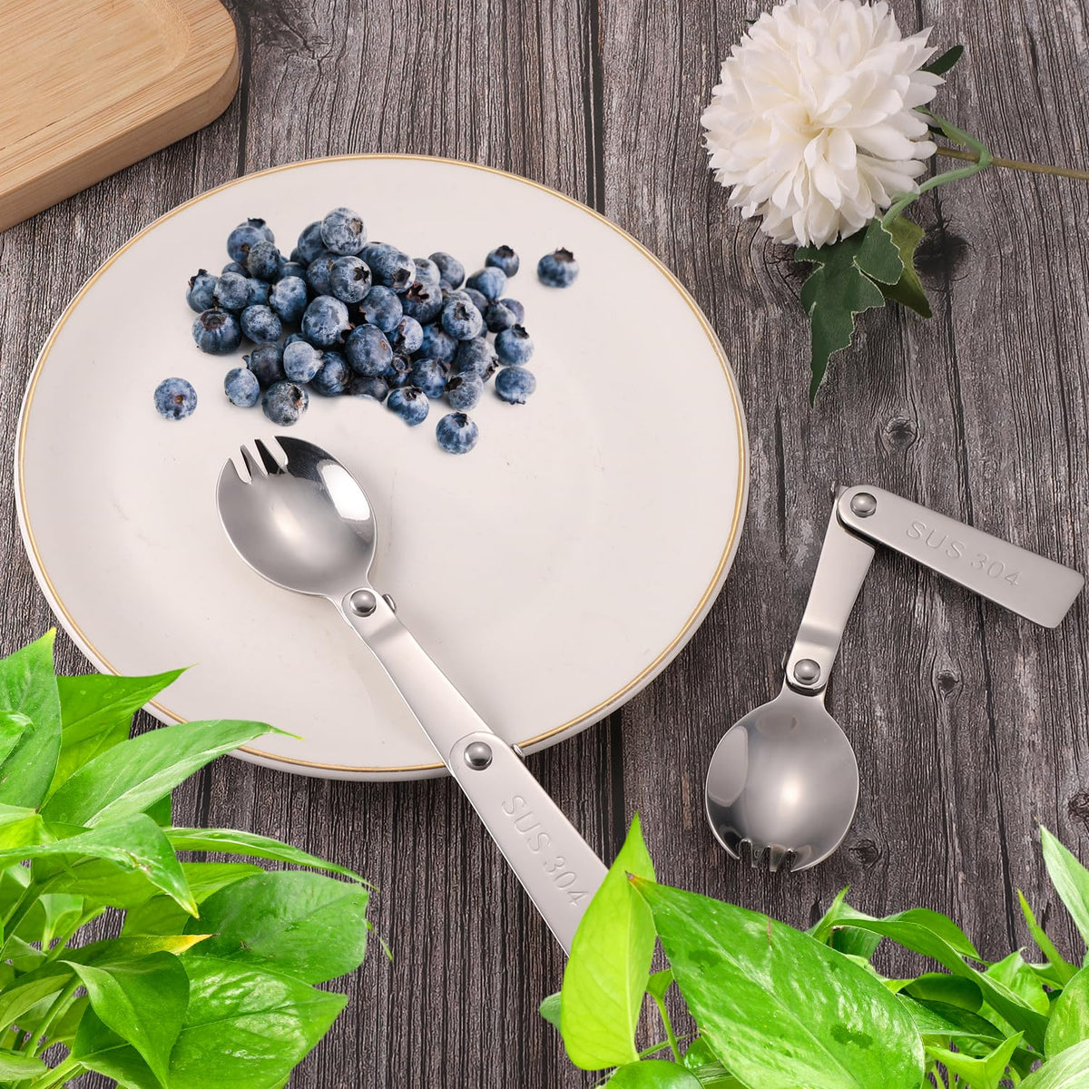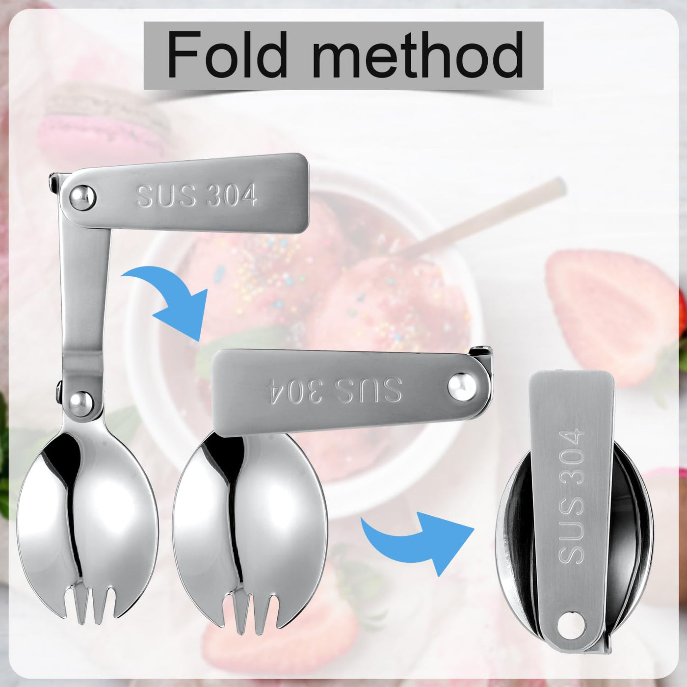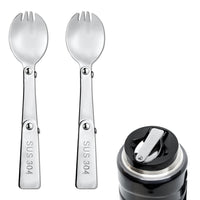 2Pcs Spork For Thermos Stainless Steel King Vacuum Insulated Food Jar 16Oz, Foldable Spoon Fork Replacement Parts Compatible Wit