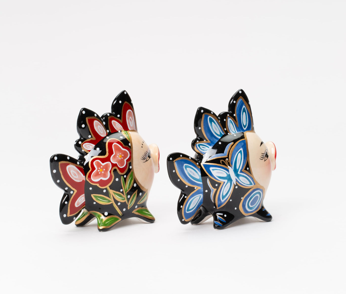 3.5 Inch Red And Blue Floral Kissing Fish Black Salt And Pepper
