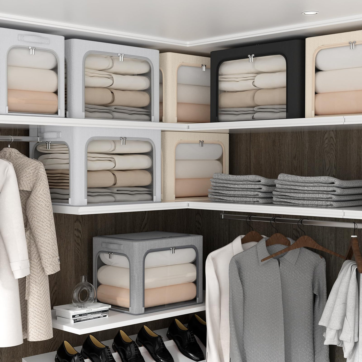 3 Openings Clothes Storage Bins Box - 3Pack Stackable Foldable Storage Bin - Metal Frame Storage Box Clothing Storage Organizer