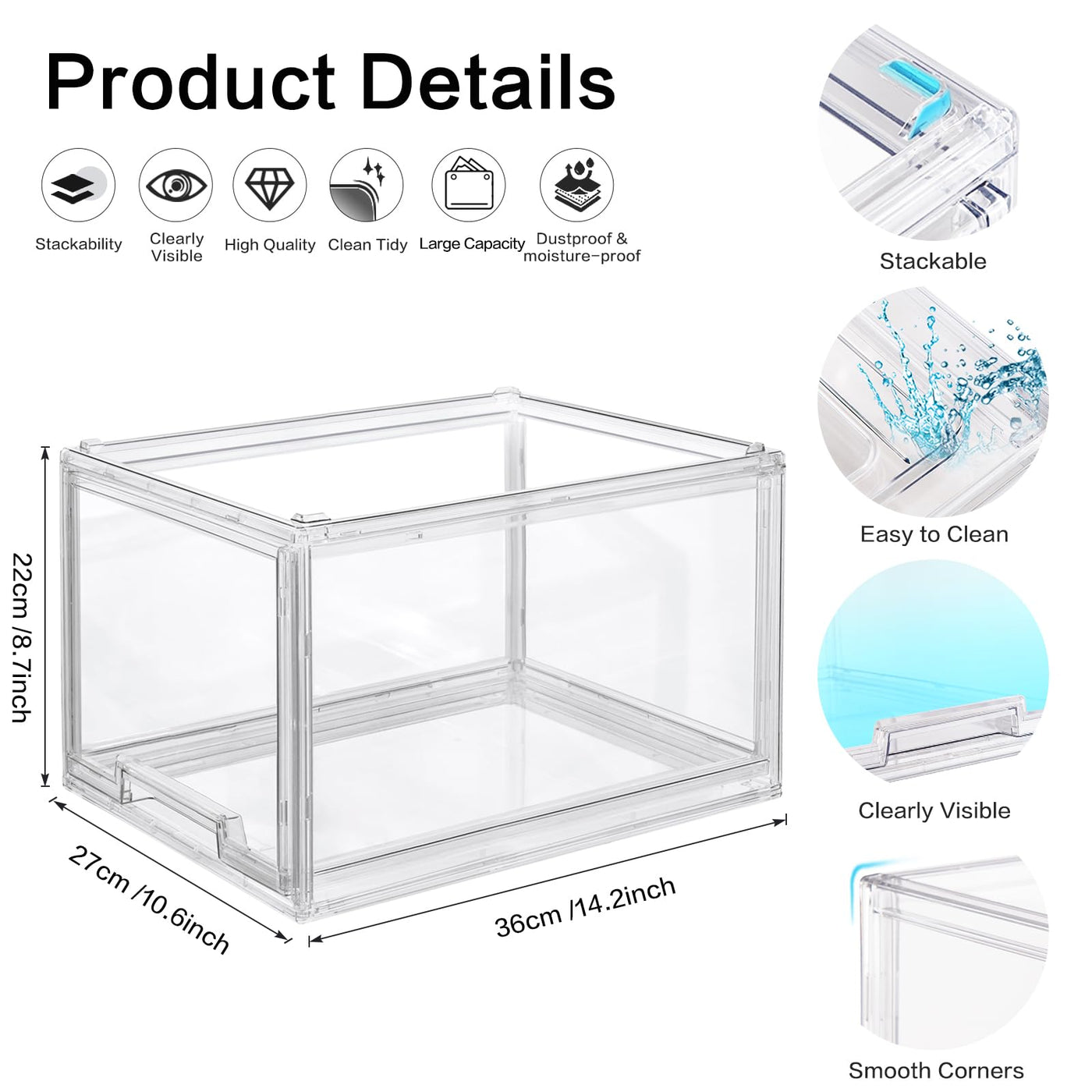 - Q: What are the dimensions of the plastic stackable storage drawers? A: Each storage drawer measures 14.2 inches in length, 10.6 inches in width, and 8.7 inches in height.