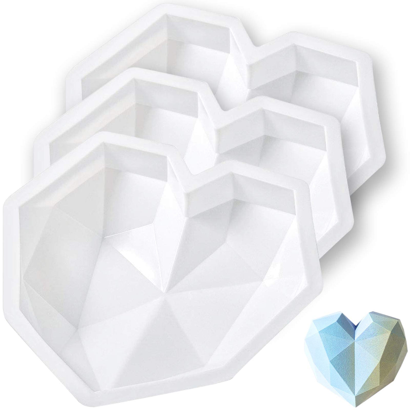 3 Pieces Valentine'S Day Diamond Heart Shape Silicone Cake Mold Silicone Cupcake Mold 3D Baking Cupcake Casting Mold For Chocola