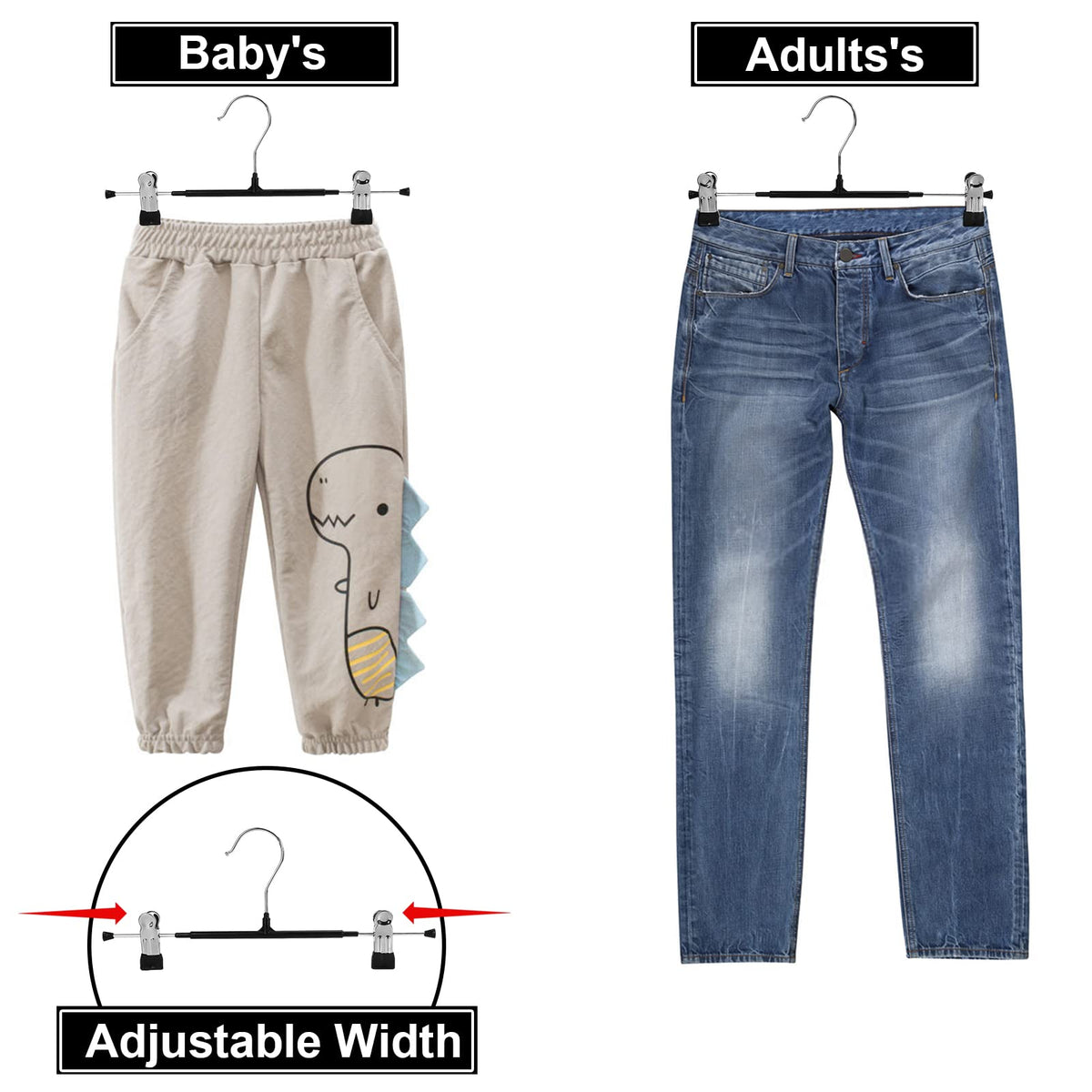 - Q: Can these hangers be used for children’s clothes? A: Yes, the adjustable clips make them suitable for hanging children's clothes, as well as skirts, pants, and other garments.