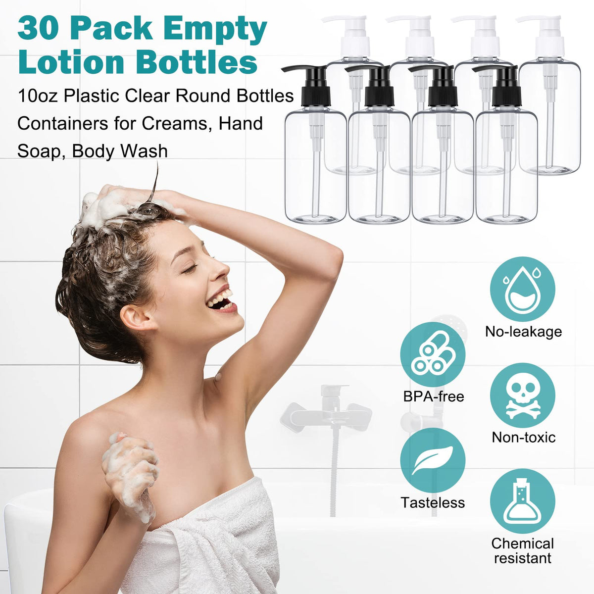 30 Pcs 10 Oz Plastic Pump Bottle Dispenser Empty Lotion Bottle With Pump Refillable Clear Hand Soap Dispenser Portable Travel Lo