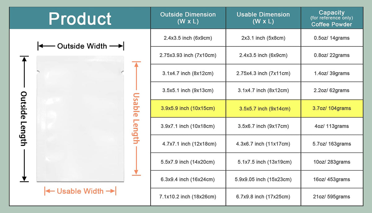 - Q: How many bags are included in a pack? A: Each pack contains 300 vacuum pouches.