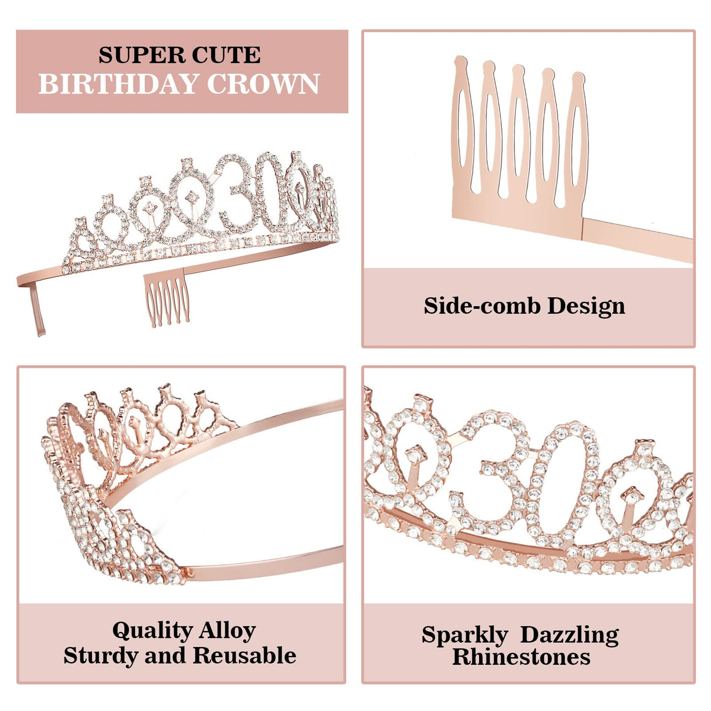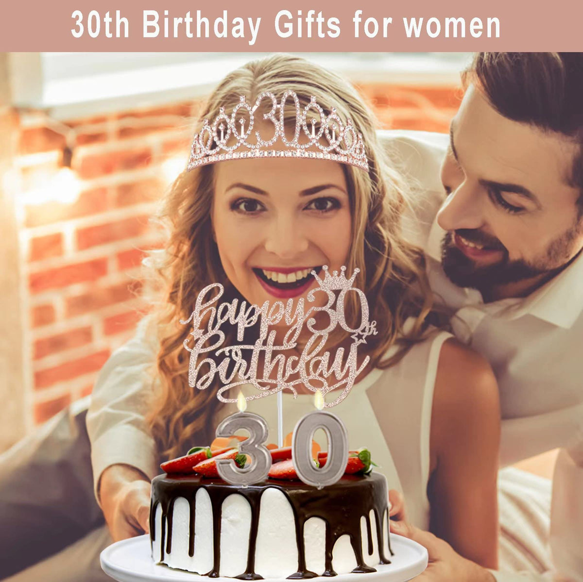 - Q: What items are included in the 30th Birthday Decorations set? A: The set includes a 30 birthday sash, a glittery 30 tiara/crown, a Happy 30th Birthday cake topper, and a set of numeral candles featuring the numbers 3 and 0.