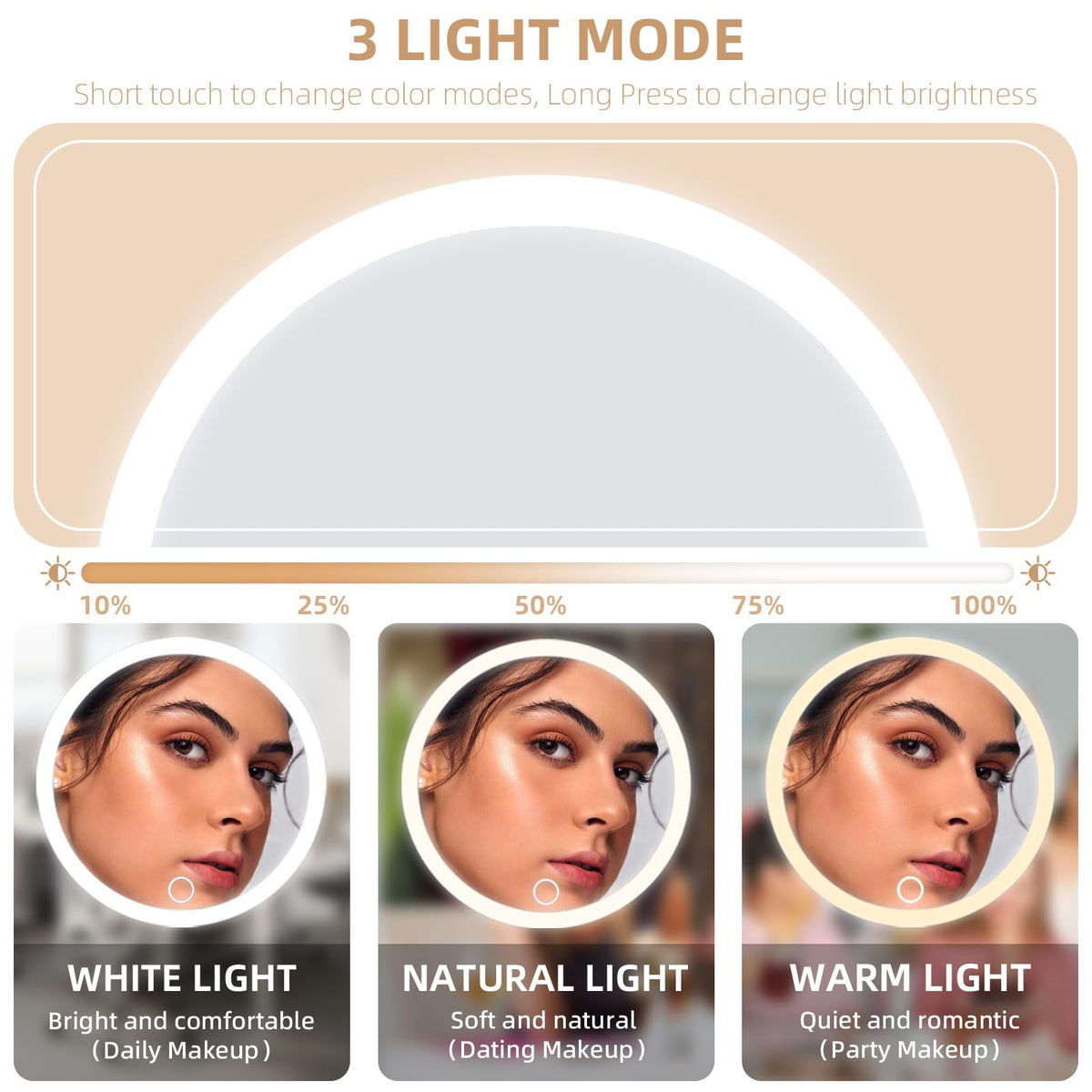 • Q: Does the mirror have adjustable lighting? A: Yes, the mirror features three color modes: cool light, natural light, and warm light. It also has dimming technology to adjust brightness according to your preference.