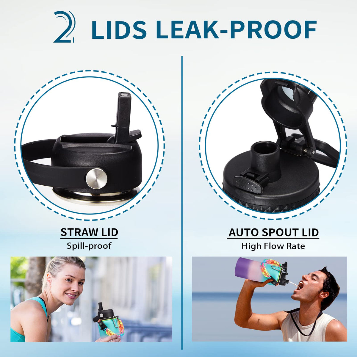32 40/64/128 oz Flask Water Bottles Insulated - with Straw Auto Spout Lid Water Bottle Stainless Steel Keep Cold 48H Hot 24H Metal Water Bottle with Strap Paracord Handle Protective Boot