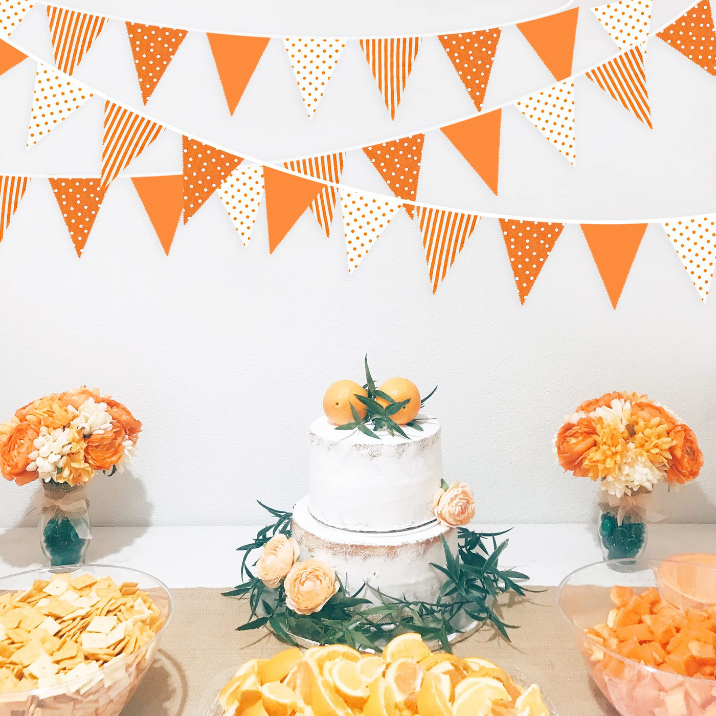 32Ft Orange Stripe Dot Triangle Flag Fabric Banner Cotton Pennant Garland Bunting Streamer For Fall Decor Autumn Wedding Birthda