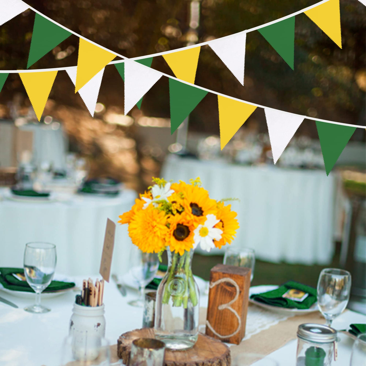 32Ft Yellow Green White Pennant Banner Fabric Triangle Flag Bunting Garland For Spring Summer Party Decorations Birthday Wedding