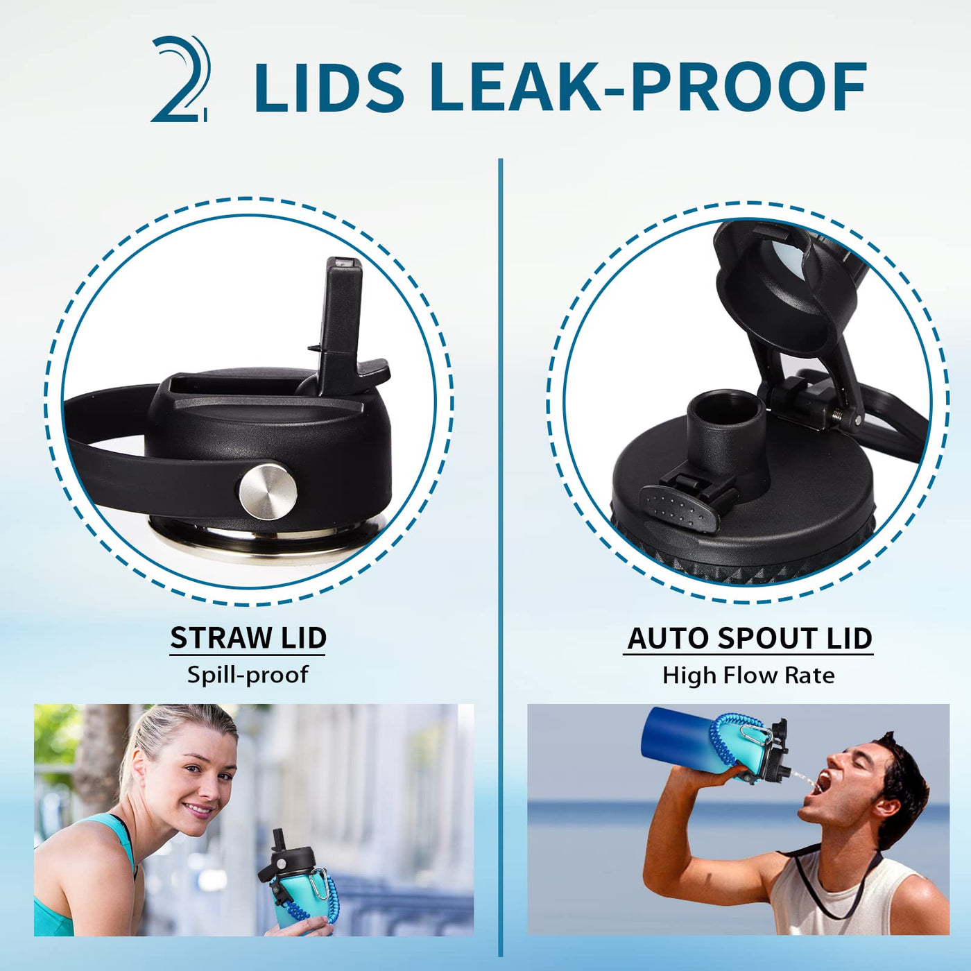 - Q: What types of lids are included with the water bottles? A: The water bottles include two types of lids: a spill-proof straw lid and an auto spout lid, both of which are leak-proof and designed for convenience.