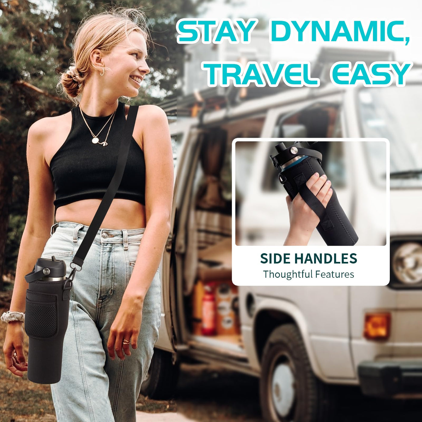 32Oz Insulated Water Bottle Tumbler With Straw - Auto Spout Lid, Protective Boot, Carrier Pouch, Vacuum Stainless Steel Water Bo