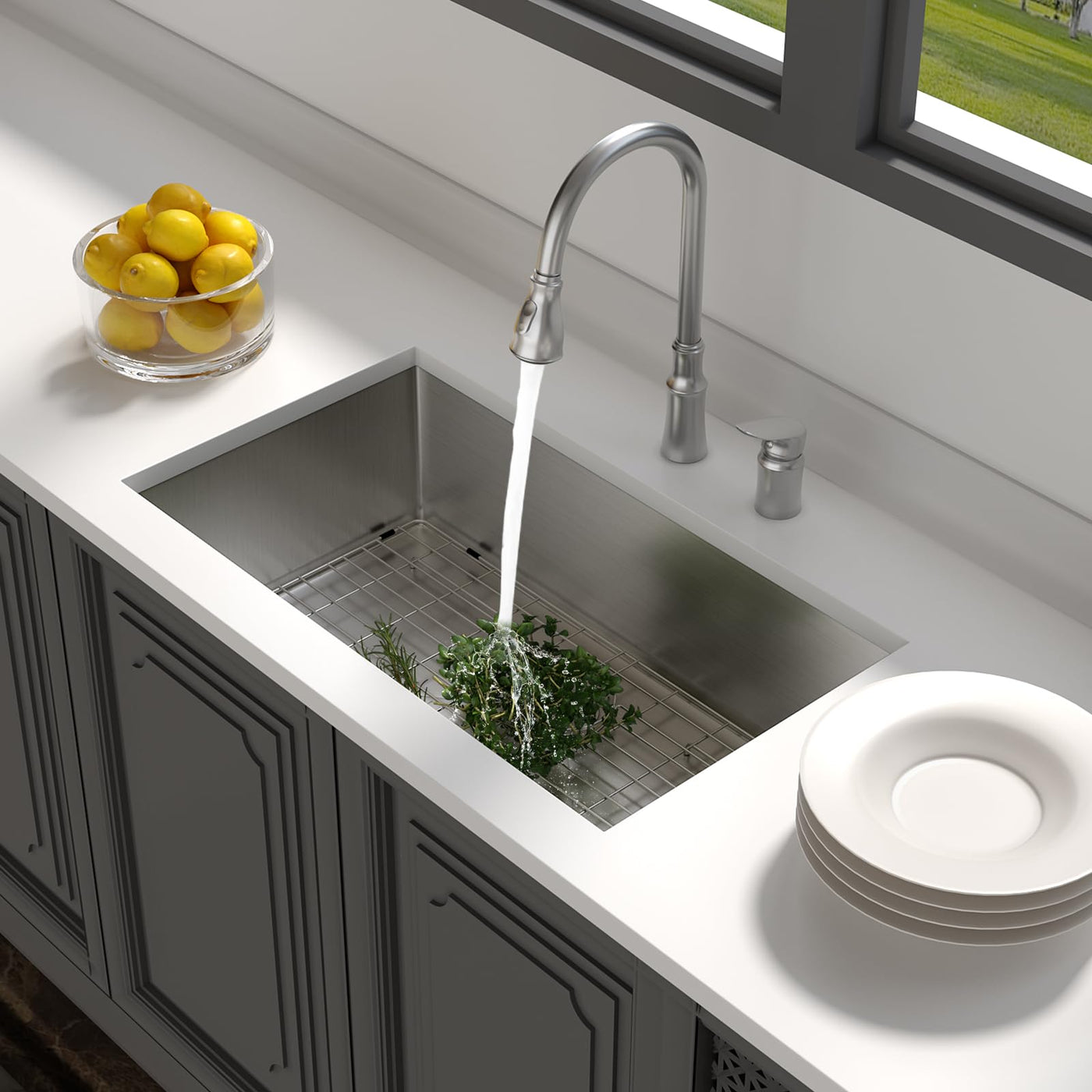33 Undermount Kitchen Sink - Lordear 33X19X10 Inch Stainless Steel Single Bowl Kitchen Sinks Round Corner 16 Gauge Handmade Unde