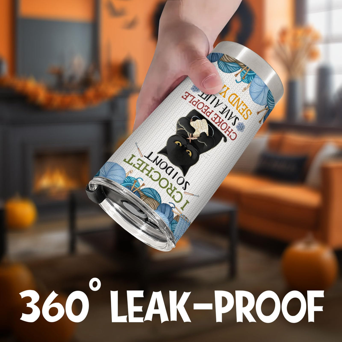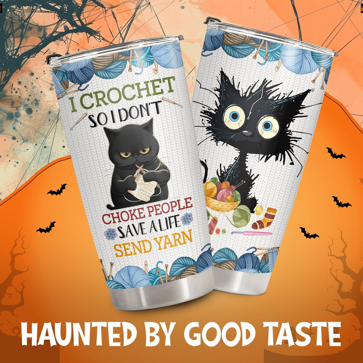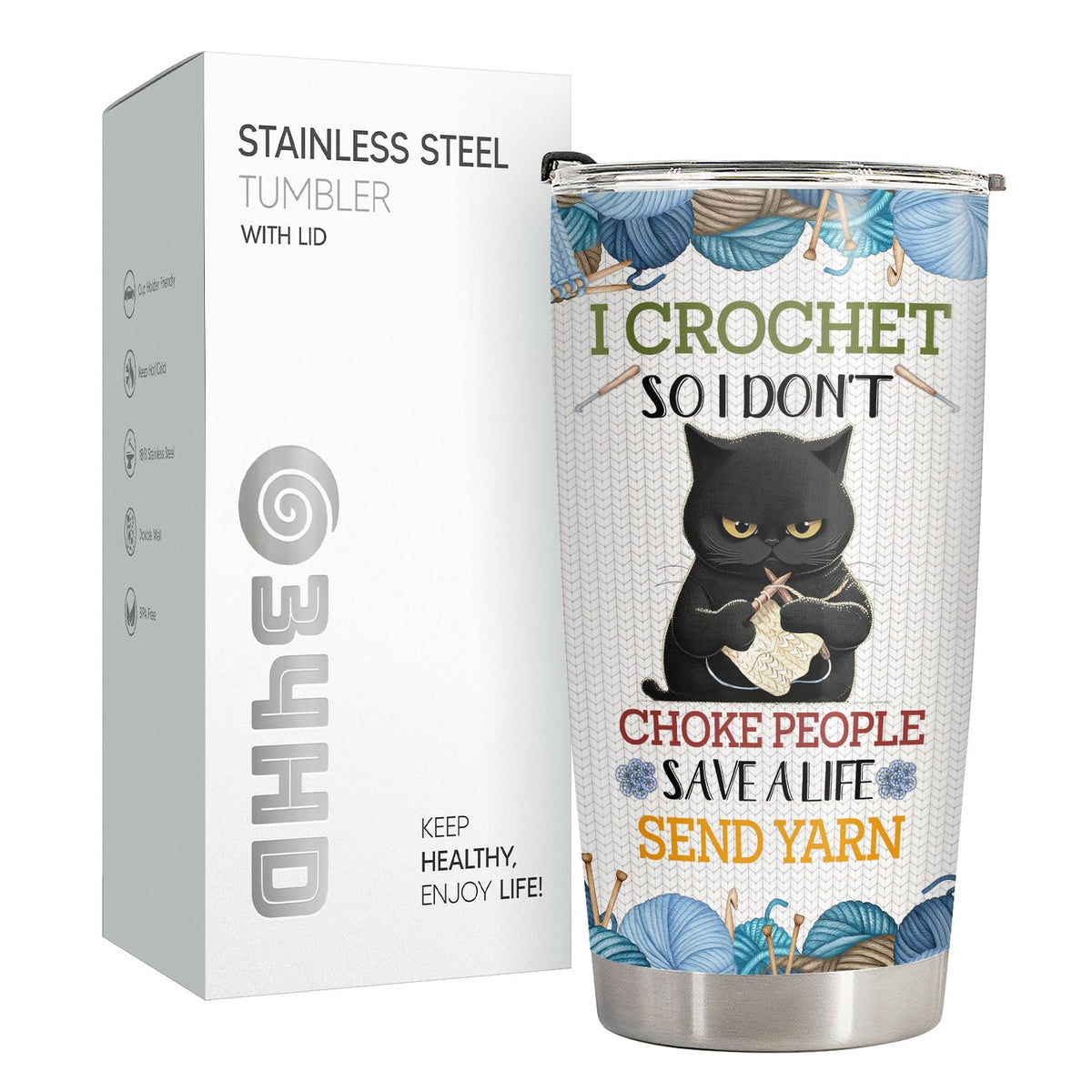 34HD Black Cat Tumbler with Lid, 20oz Vacuum Insulated Cat Coffee Cup, I Crochet So I Dont Choke People Mug, Crochet Lover Gifts