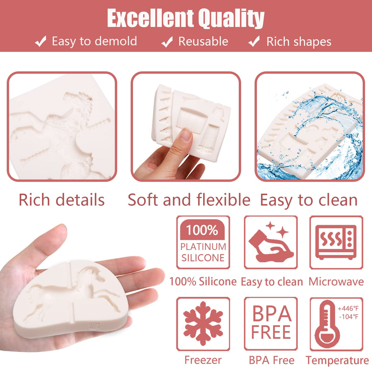 - Q: What should I do to prepare the molds before using them? A: It is recommended to wash the molds with water to remove any surface dust before the first use to ensure optimal results.