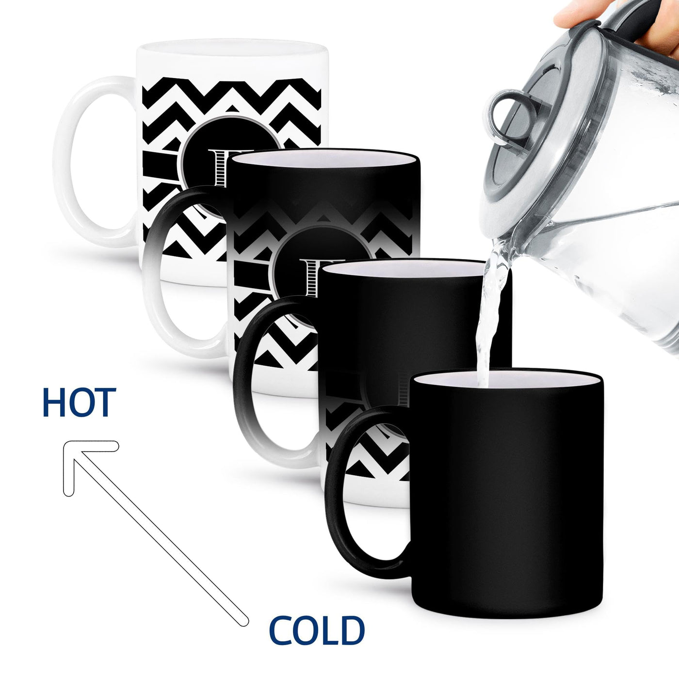 3D Rose Mug_222067_3 ''Black And White Chevron Monogram Initial E'' Magic Transforming Mug, 11Oz, Black/White