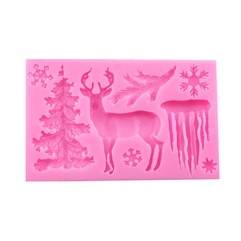 3D Xmas Christmas Cake Chocolate Mould Baking Mold Tree Snowman Silicone Fondant Shape (Pink)