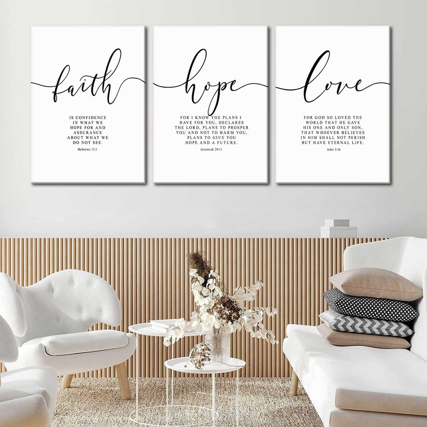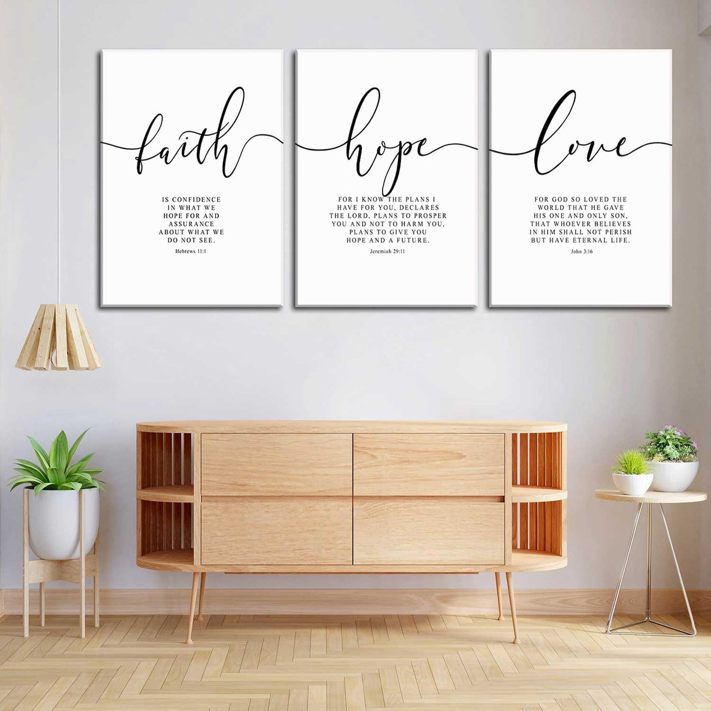 3Pcs Framed Faith Hope Love Bible Verse Canvas Wall Art Christian Scripture Quote Posters Prints Inspirational Religious Wall De