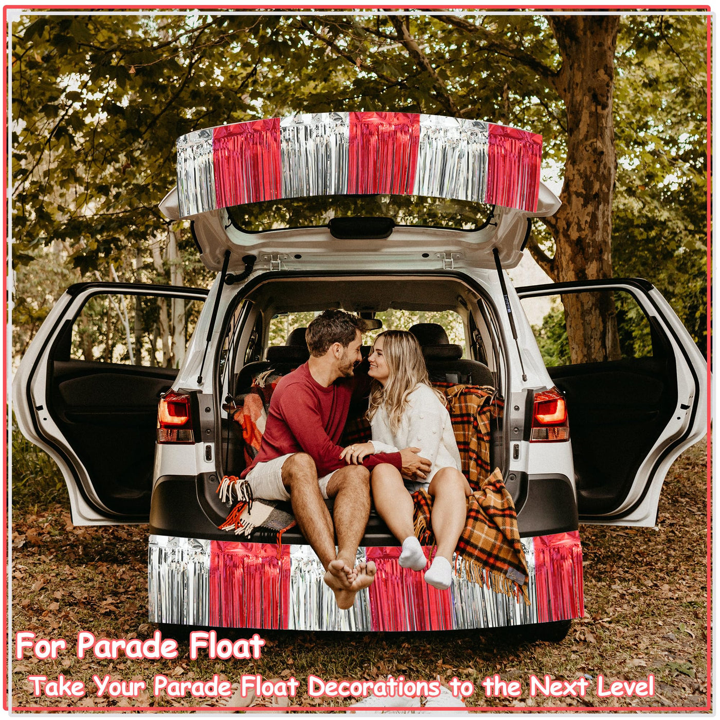 4 Pack 10 Feet Red Silver Foil Fringe Garland Metallic Tinsel Streamers Banner Fringe Curtain Banner For Parade Floats Wedding G