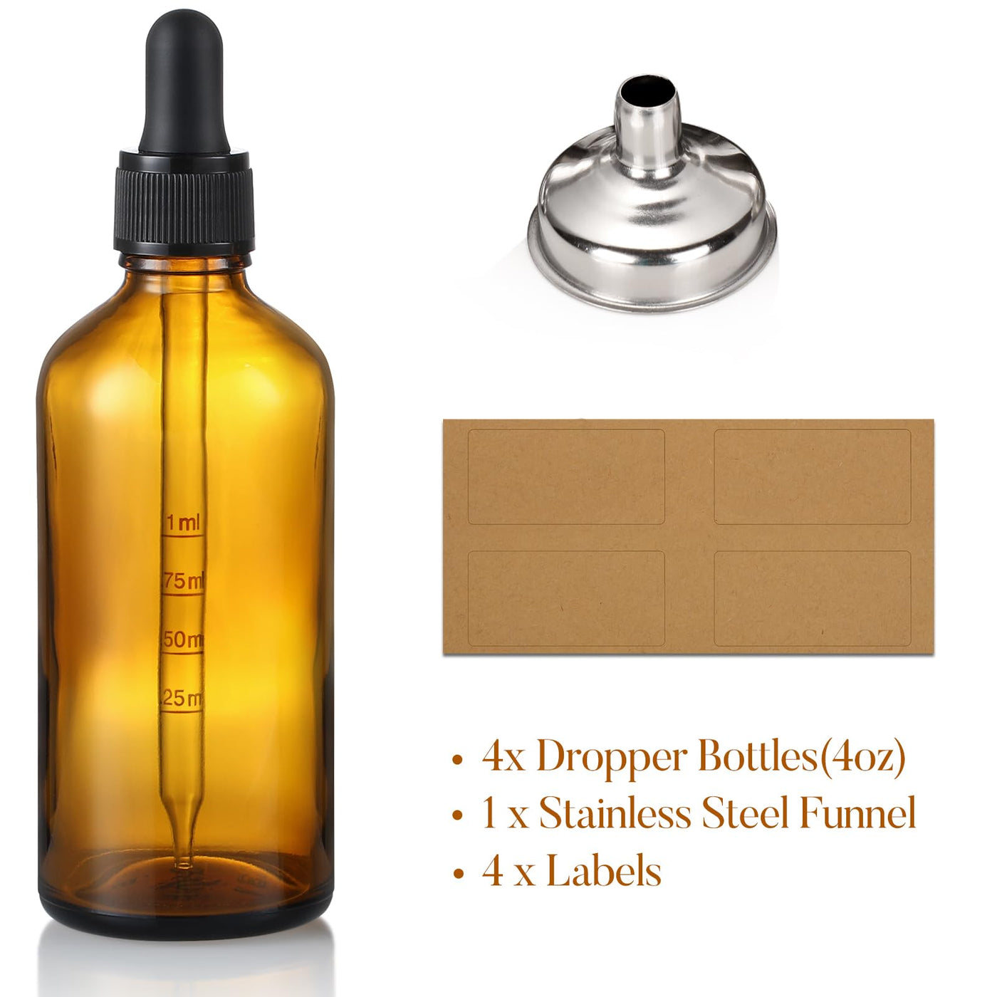 4 Pack 4Oz Glass Dropper Bottles With Measured Dropper - 120Ml Dark Amber Tincture Bottles With Graduated Calibrated Glass Eye D